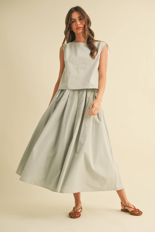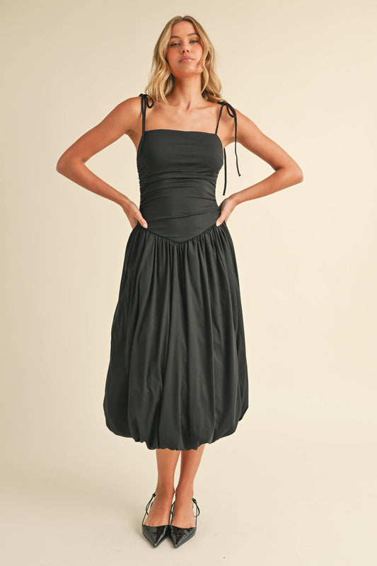 Mixed Print Waist Tie Sleeveless Midi Dress