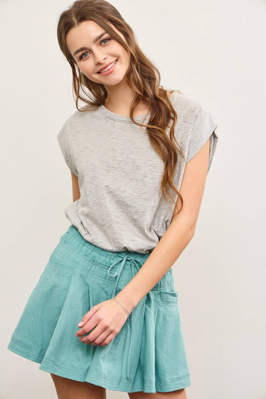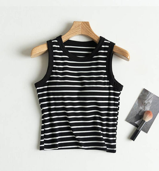 Daily Basic cotton blend stripe fitted tank top w self bra