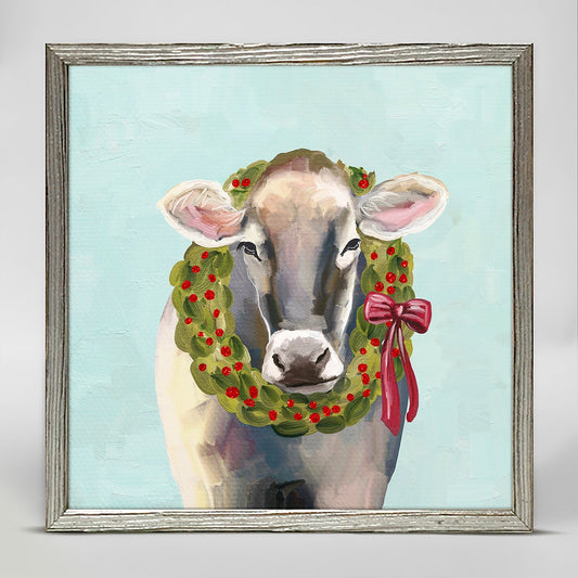 8-1/4" Square Fir Wood Framed Wall Décor w/ Christmas Saying & Scene, Multi Color, 4 Styles