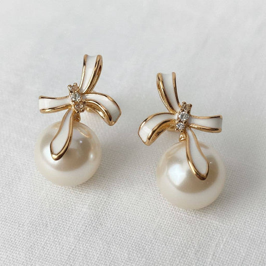 French Inspired Pearl Cubic Zirconia Stud Earrings