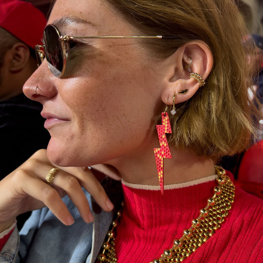 Purple & White Checkered Enamel Huggies