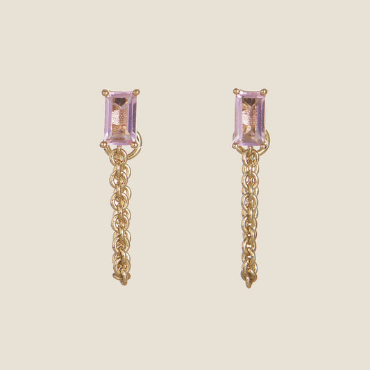 Pink Baguette Chain Drop Studs