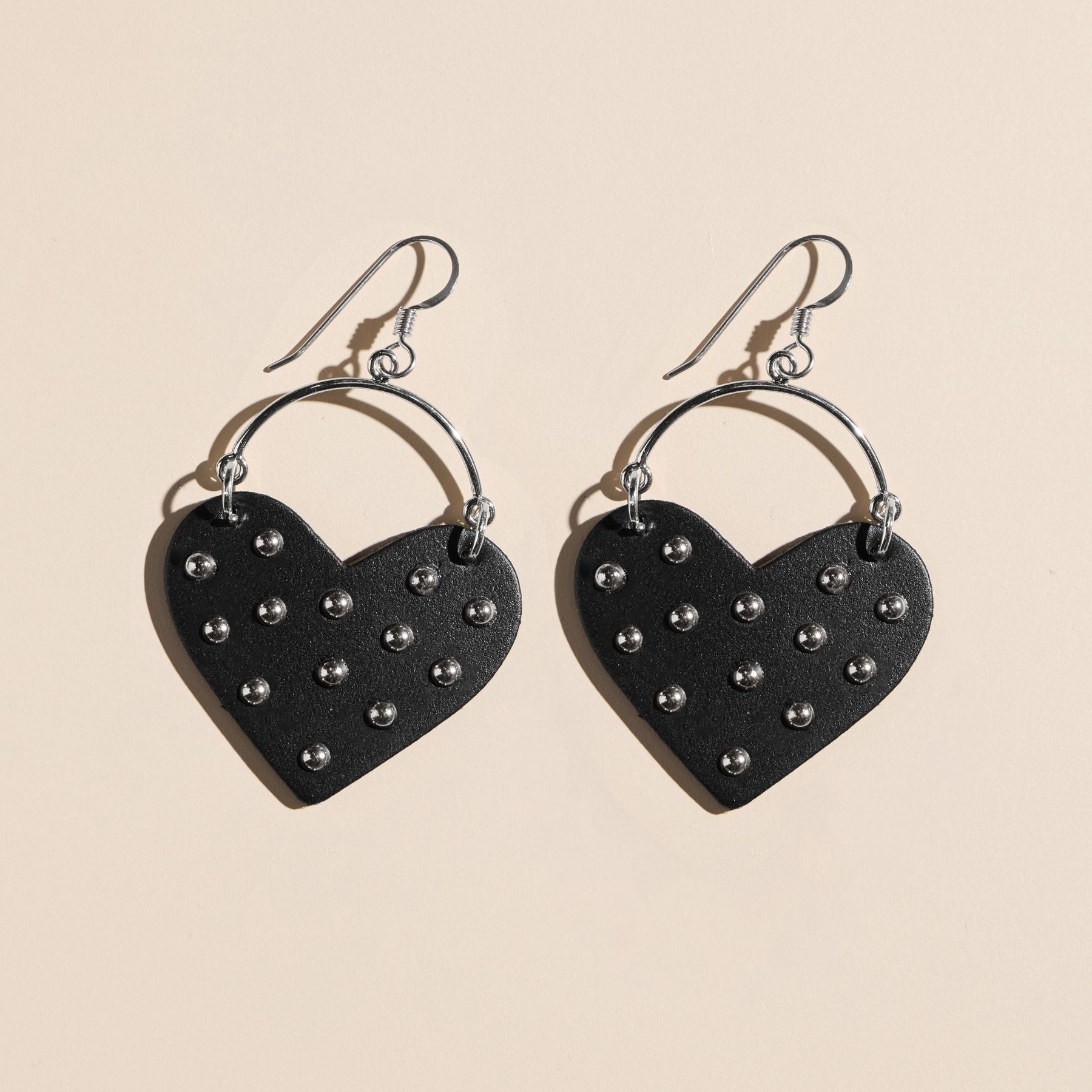 Make a statement with the Studded Harlow earrings. They feature a classic heart shape and are crafted with gold or silver studs applied individually by hand.