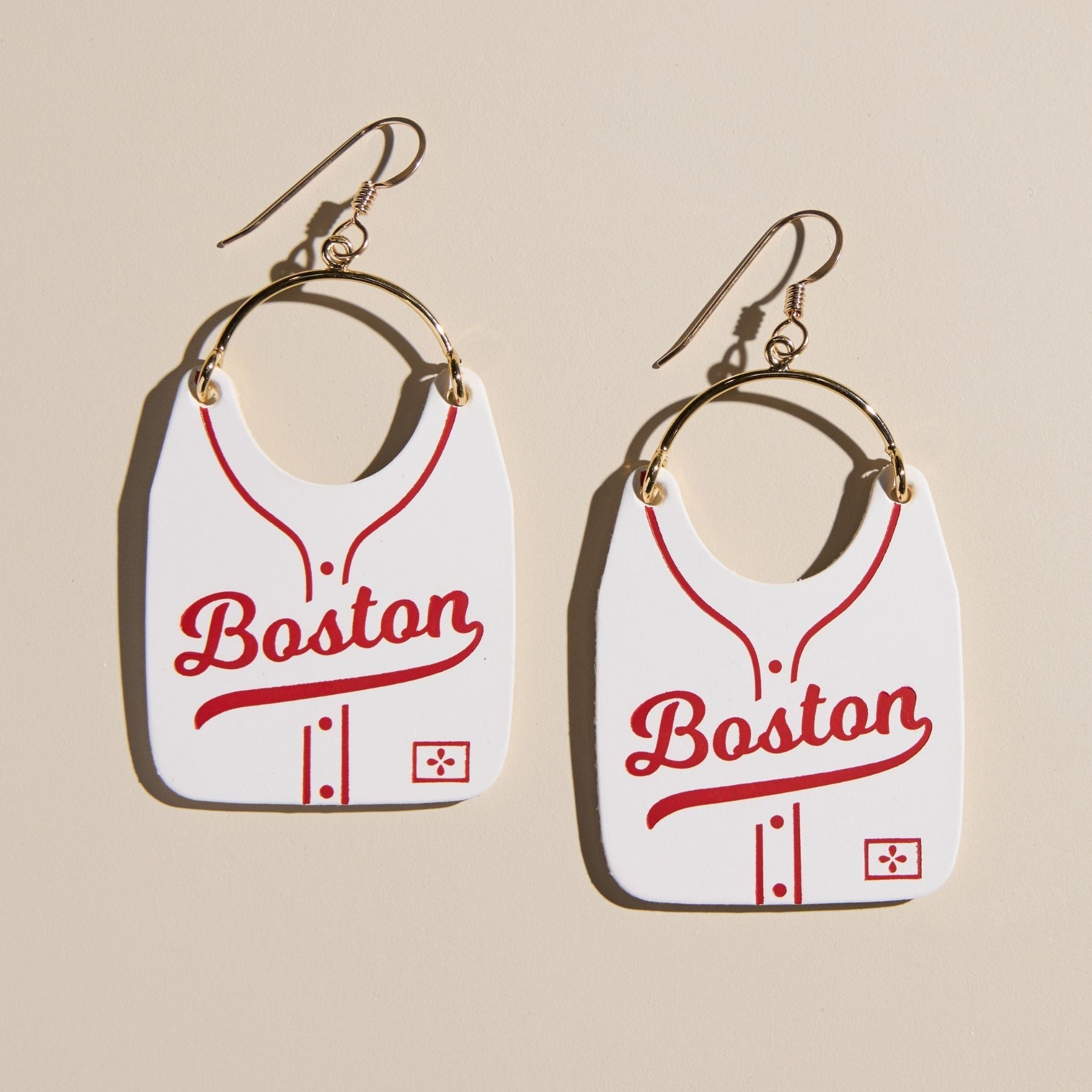 Elevate your game day look with our Boston Baseball Jersey Earrings, celebrating our Boston Baseball Team. This earring is perfect for showing off your Boston team spirit in style.