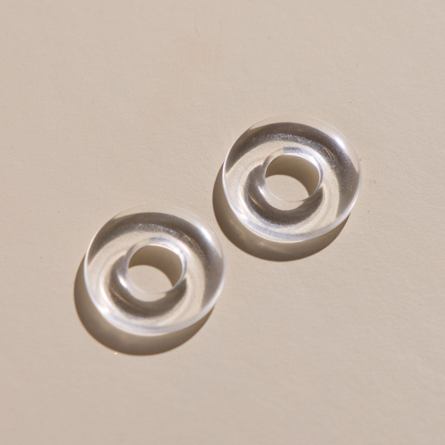 These unique Clear Acrylic Donut Beads to be worn threaded through our favorite necklace, bolo bracelet, or earrings.