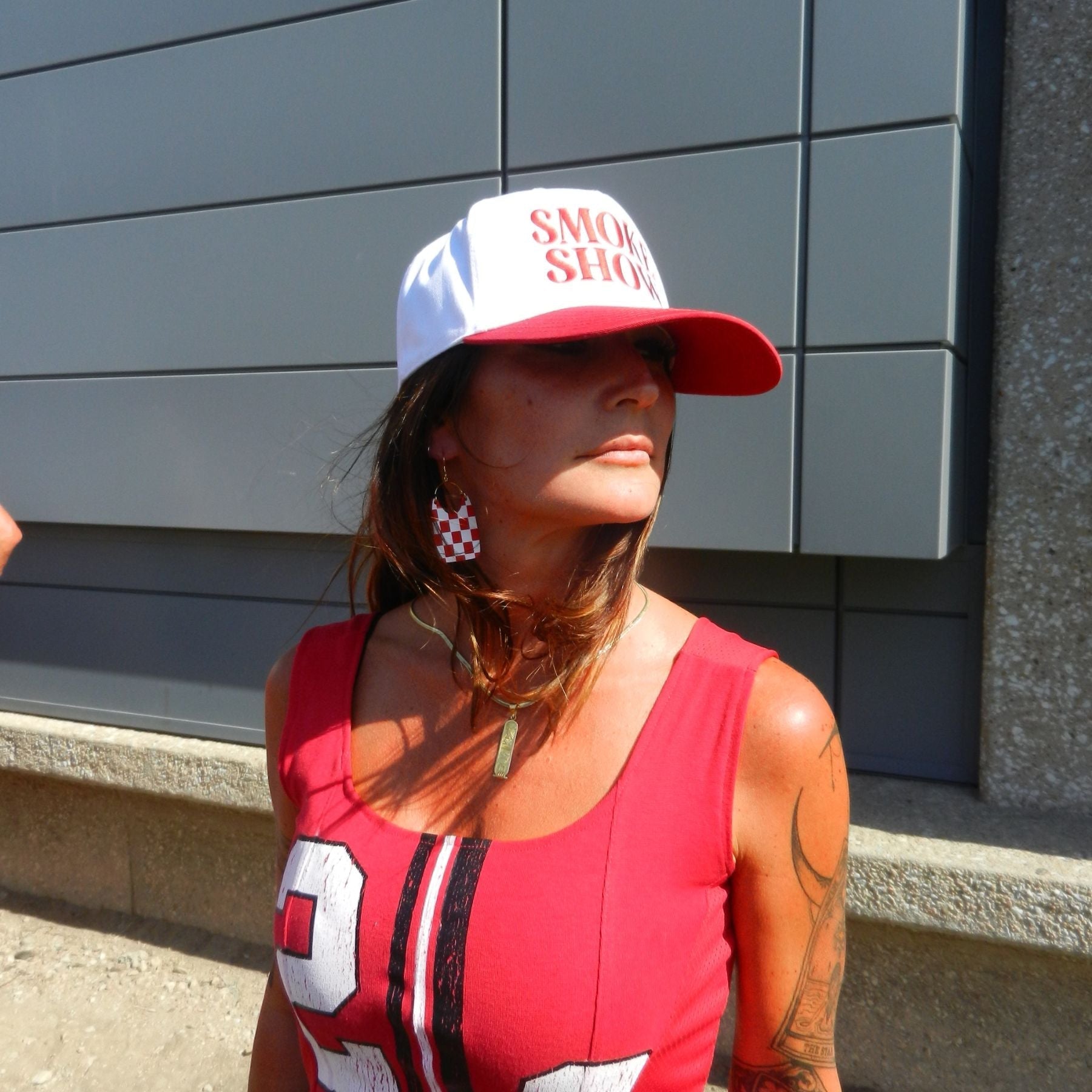 Elevate your game day look with our Crimson Checkmate Charlies. Be the biggest fan, while looking cute and chic on game day. These unique Checkmate Charlie earrings are designed for showing off your team spirit in style.