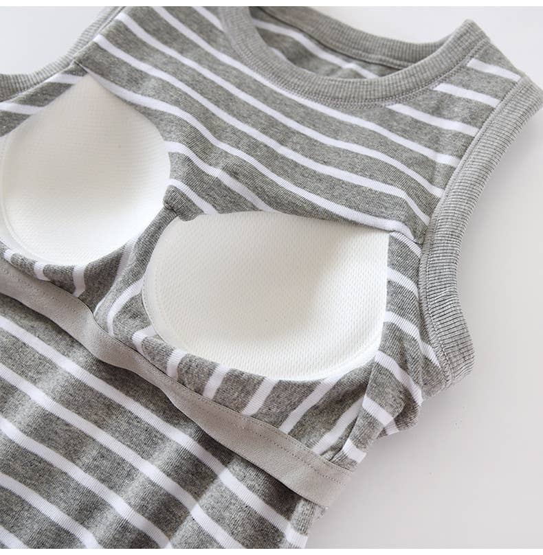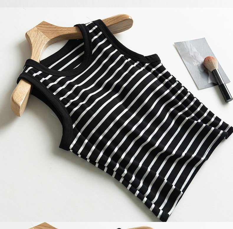 Daily Basic cotton blend stripe fitted tank top w self bra