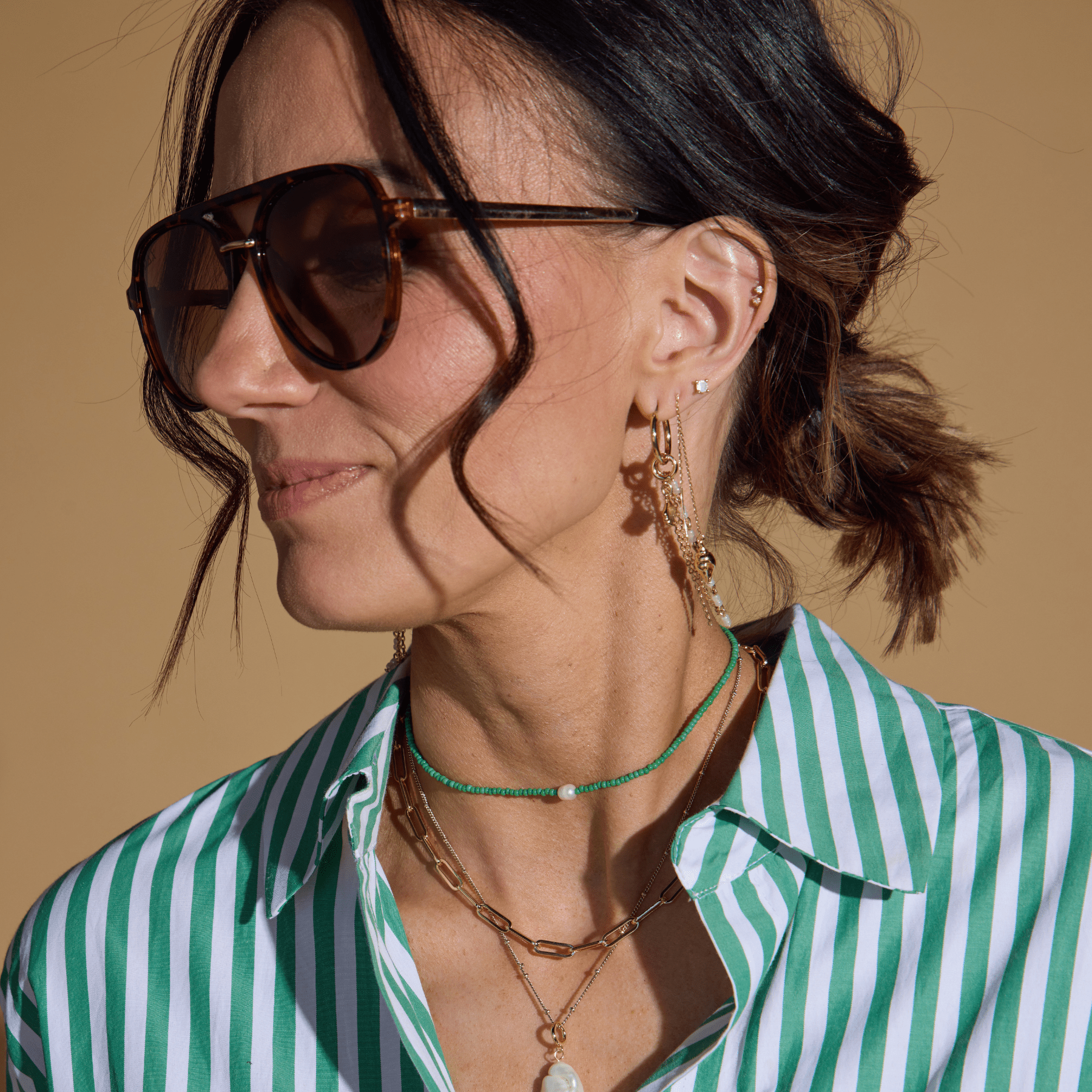 These sunglasses feature a cheetah frame with a gradient brown lens. The frame is very lightweight and this aviator style has acetate nose pieces.