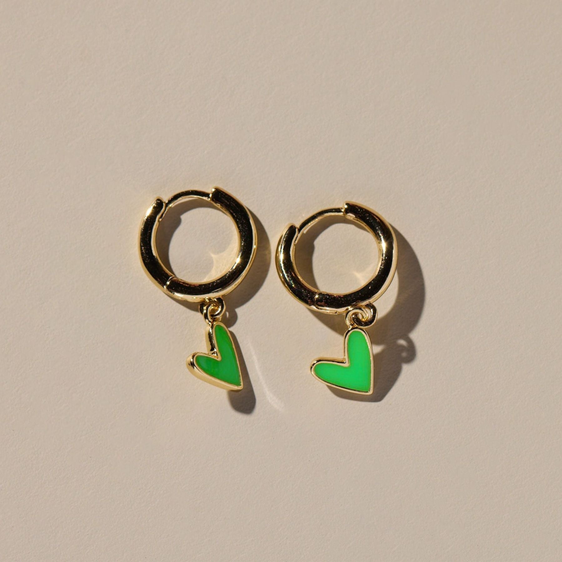 On-trend huggie hoops are ideal for mixing and stacking. Inspired by their namesake statement earring, these petite hoops feature a hanging green enamel charm in gold plating over brass with a hinged closure.