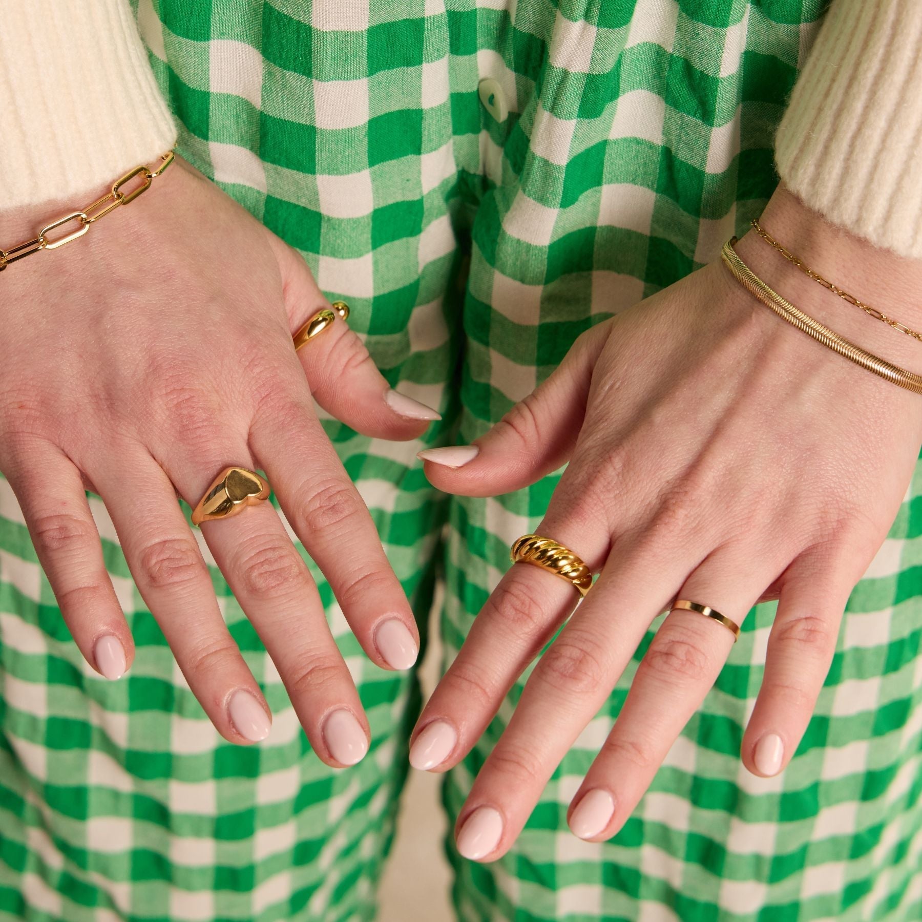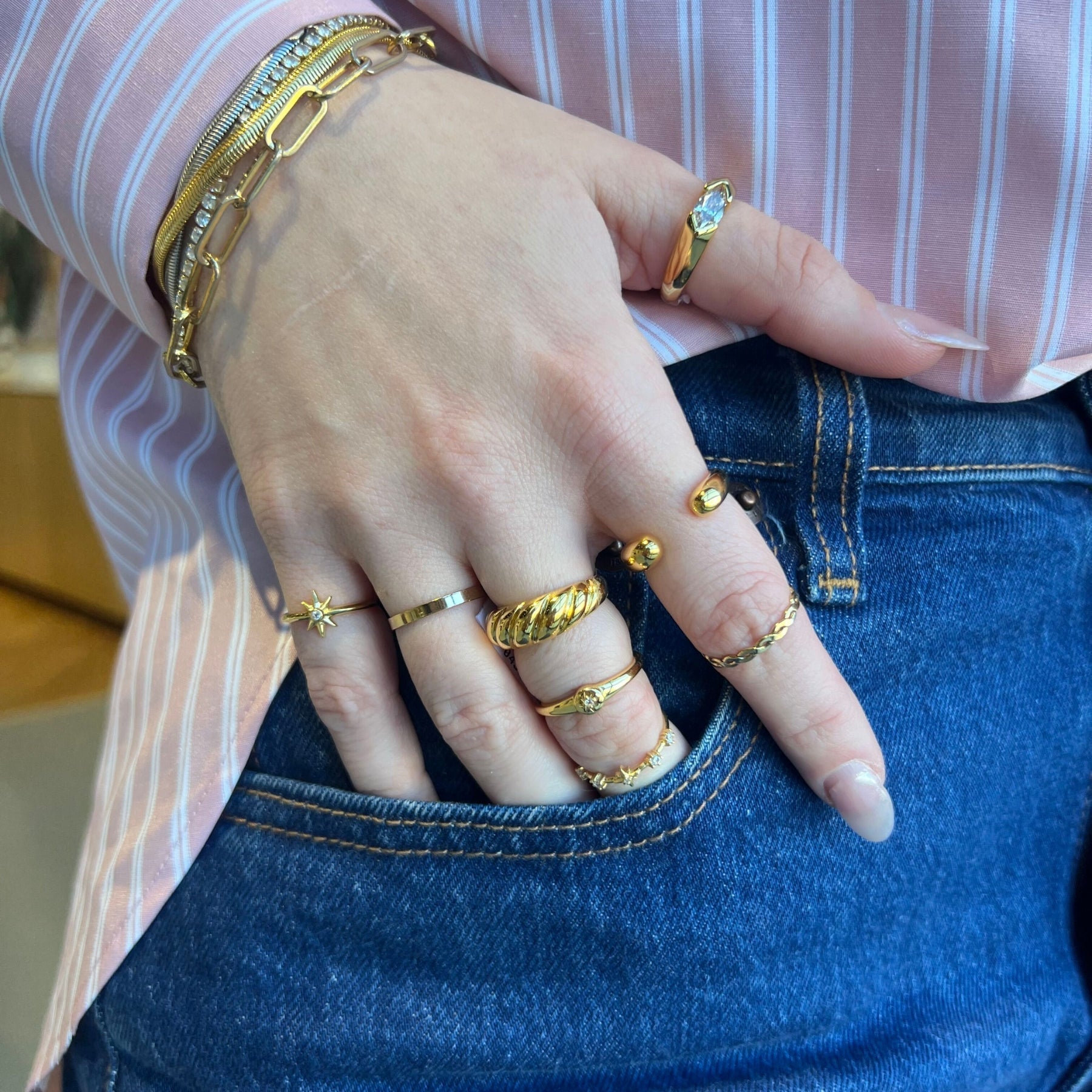 The Double Round Ended Ring features an adjustable, open-ended design with sleek round accents on each end. Made with durable PVD plating, it’s waterproof and perfect for everyday wear. Its modern, versatile style makes it ideal for stacking or wearing alone.