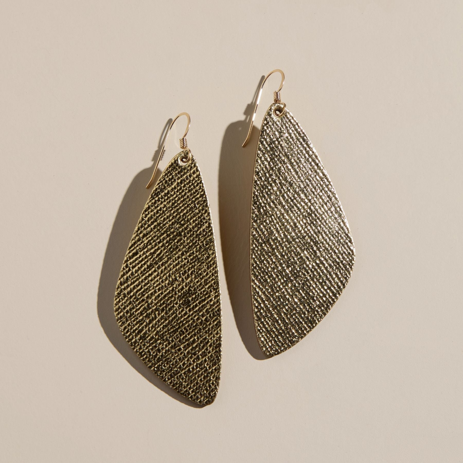 Make a shimmering statement with the Evie in Gold Leaf leather. Featuring one of our most loved face-framing shapes, these statement earrings have the right balance of motion and weightlessness.