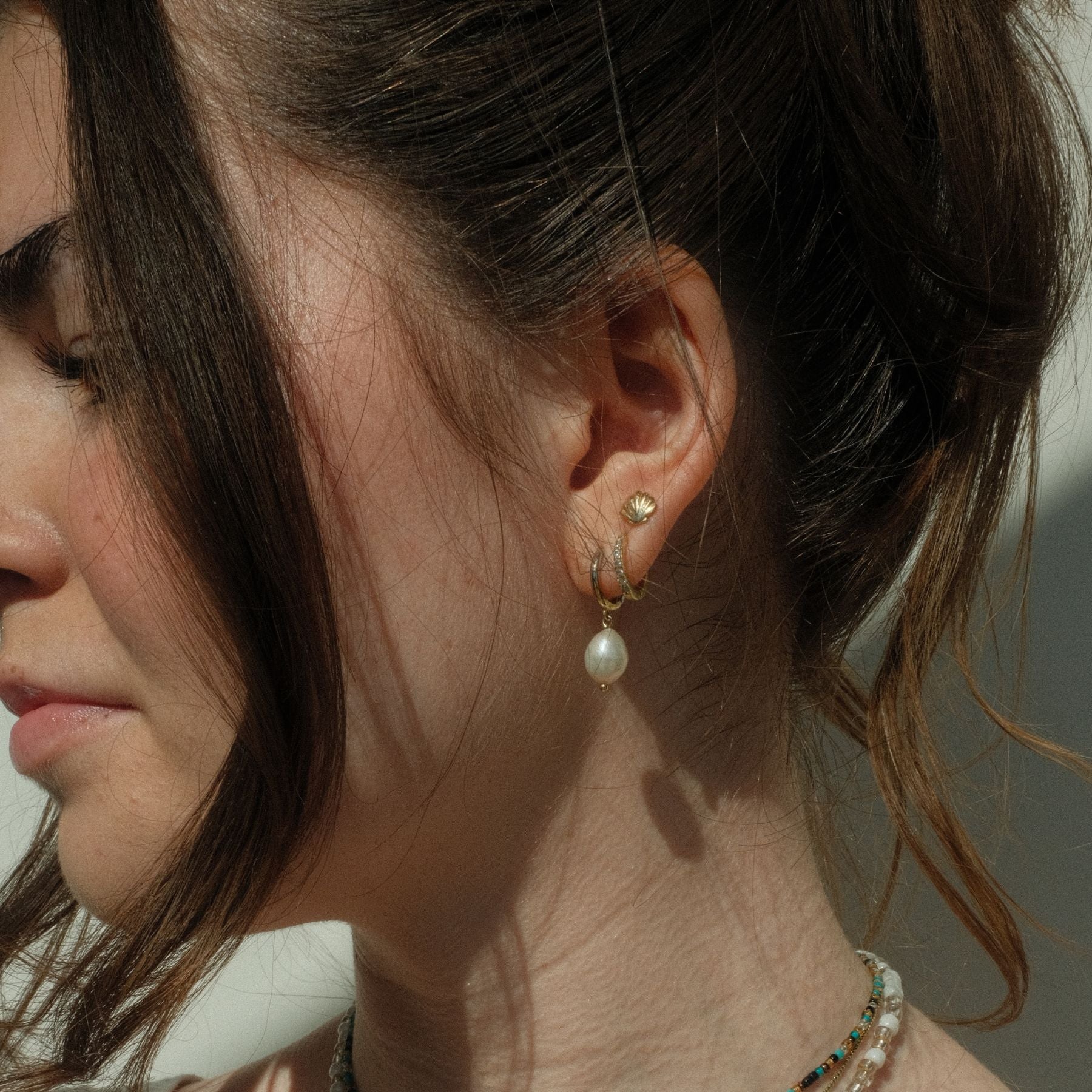 Gold Pearl Drop Huggies