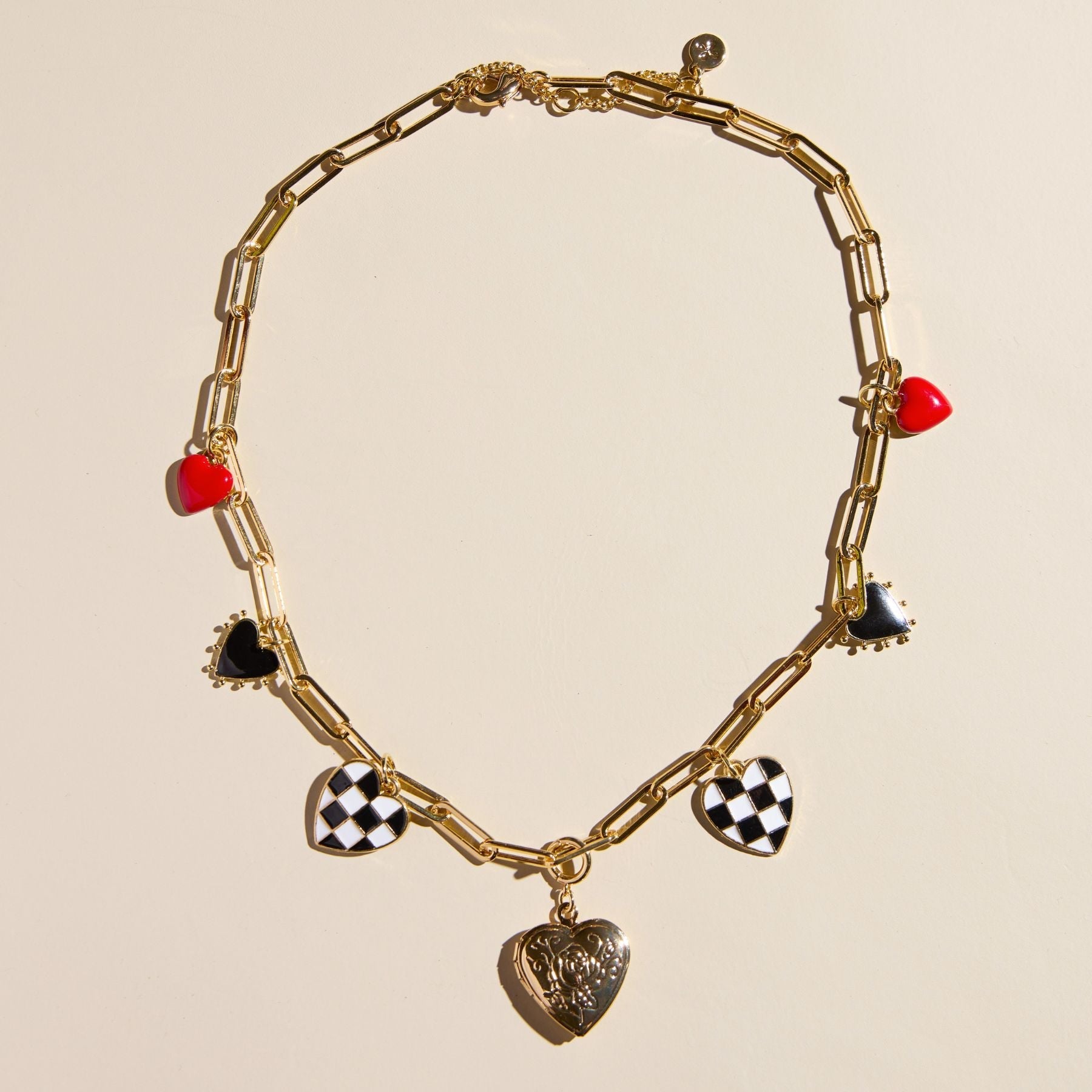 The essence of maximalism, but refined innocence begins with our Heartbreaker Charm Necklace. Featuring a necklace full of hearts, you will be creating a statement full of love. Mix and match your charms however you feel with this necklace or buy everything separately and customize it your way all the way from the beginning.