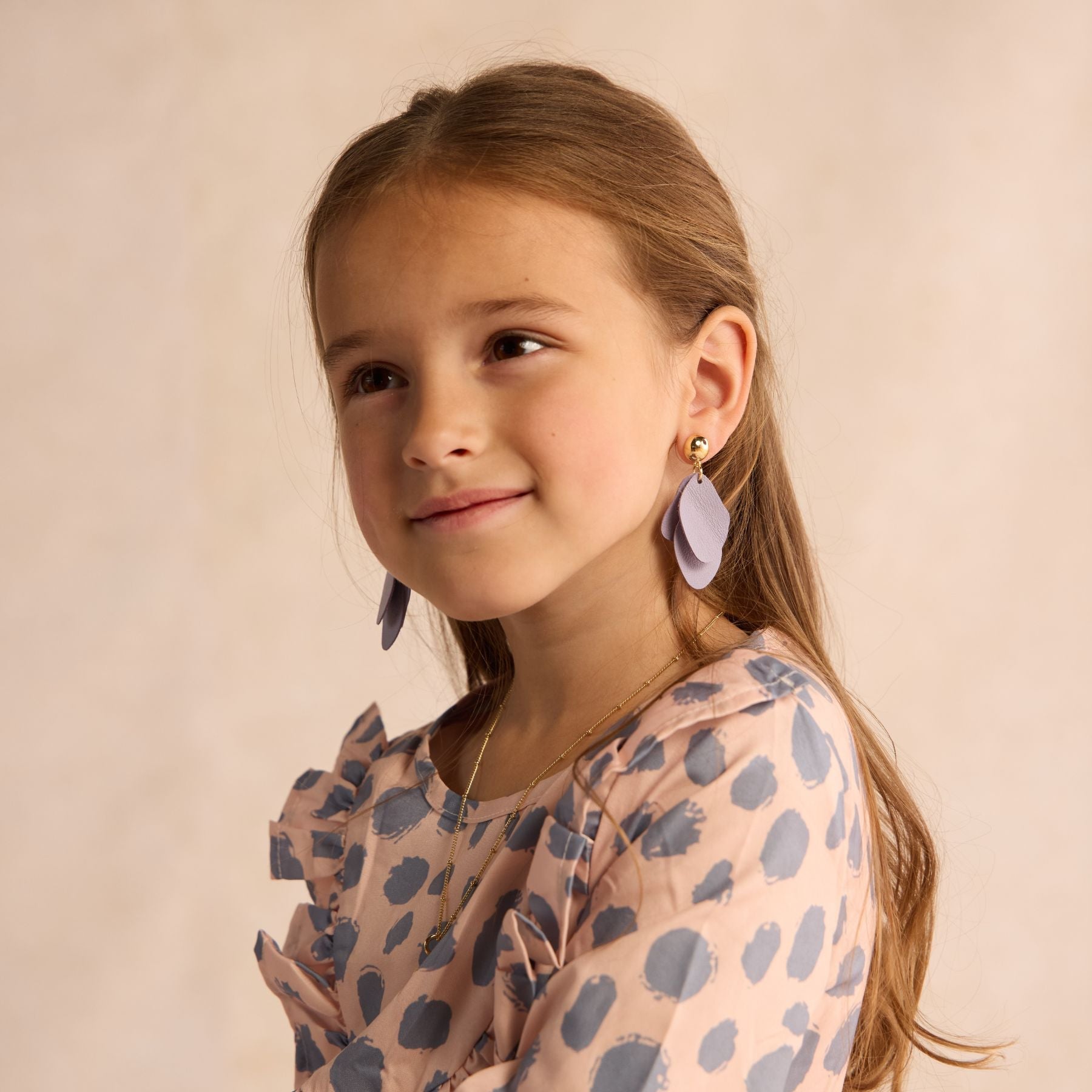 A new take on leather earrings, introducing the Weston. Crafted with soft Lilac Leather and gold or silver stud piece. These statement stud earrings are a one-of-a-kind, free-flowing leather earring, with subtle movement and lightweight design.