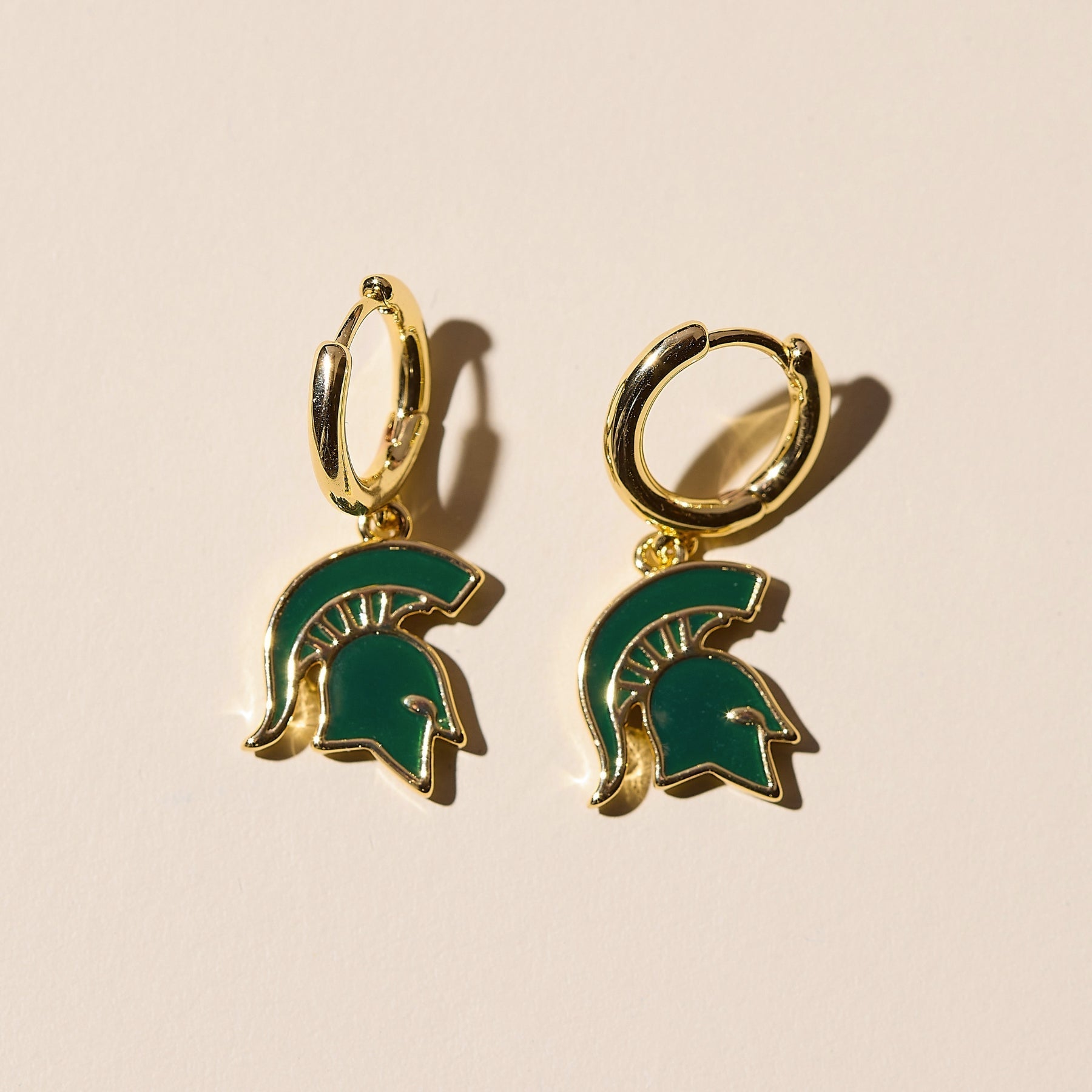 Elevate your game day look with our Michigan State University Spartan Huggies. These enamel huggie hoop earrings give a subtle nod to your team spirit.