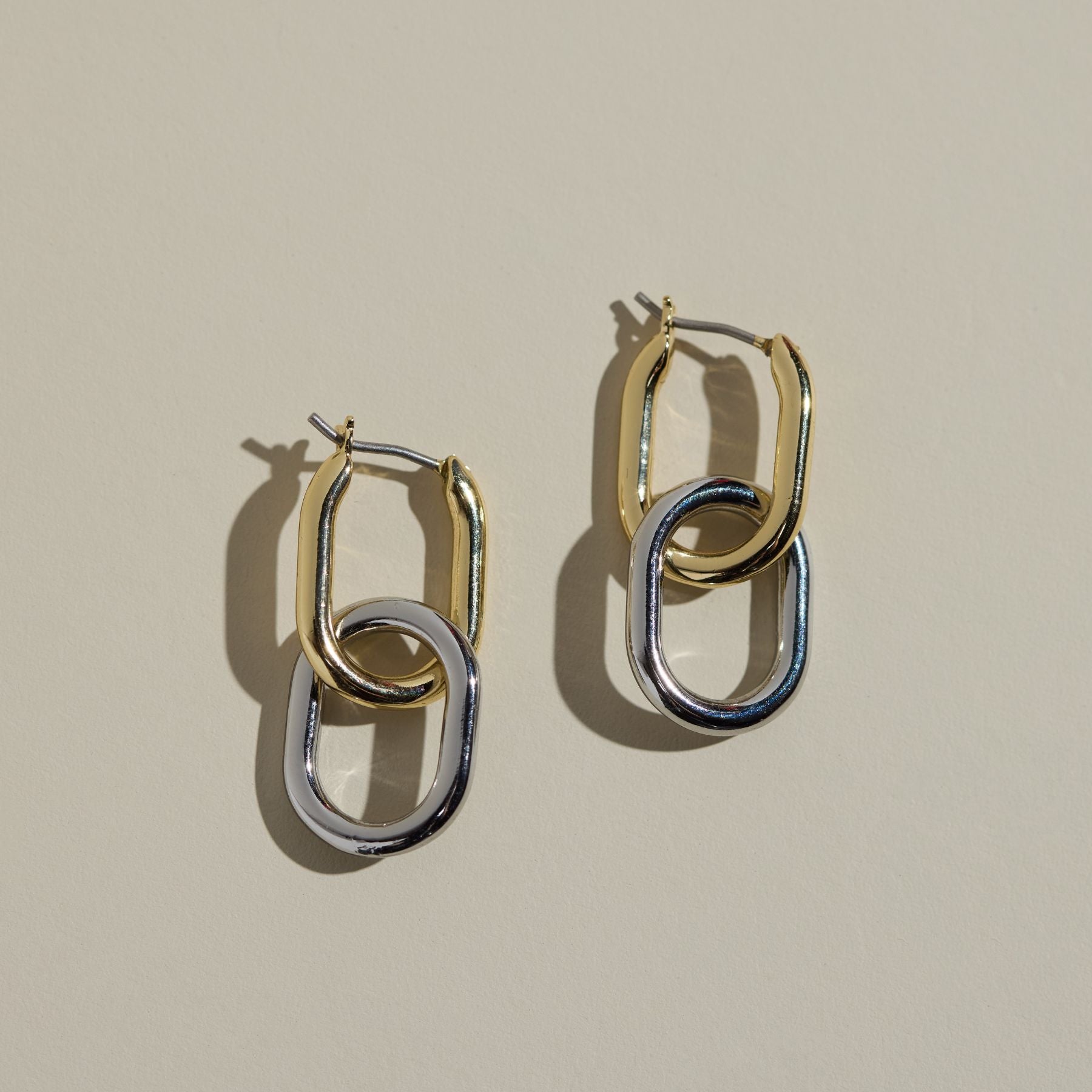 Silver. Gold. Silver and gold? Can't decide, why not both? Our mixed metal chain link hoops are the perfect minimalistic bold hoop that allows you to truly mix those metals together. These are the perfect earrings for either a modern and minimalistic earring, or become maximalist and mix every metal together to curate the perfect earstack and maximalist jewelry style.