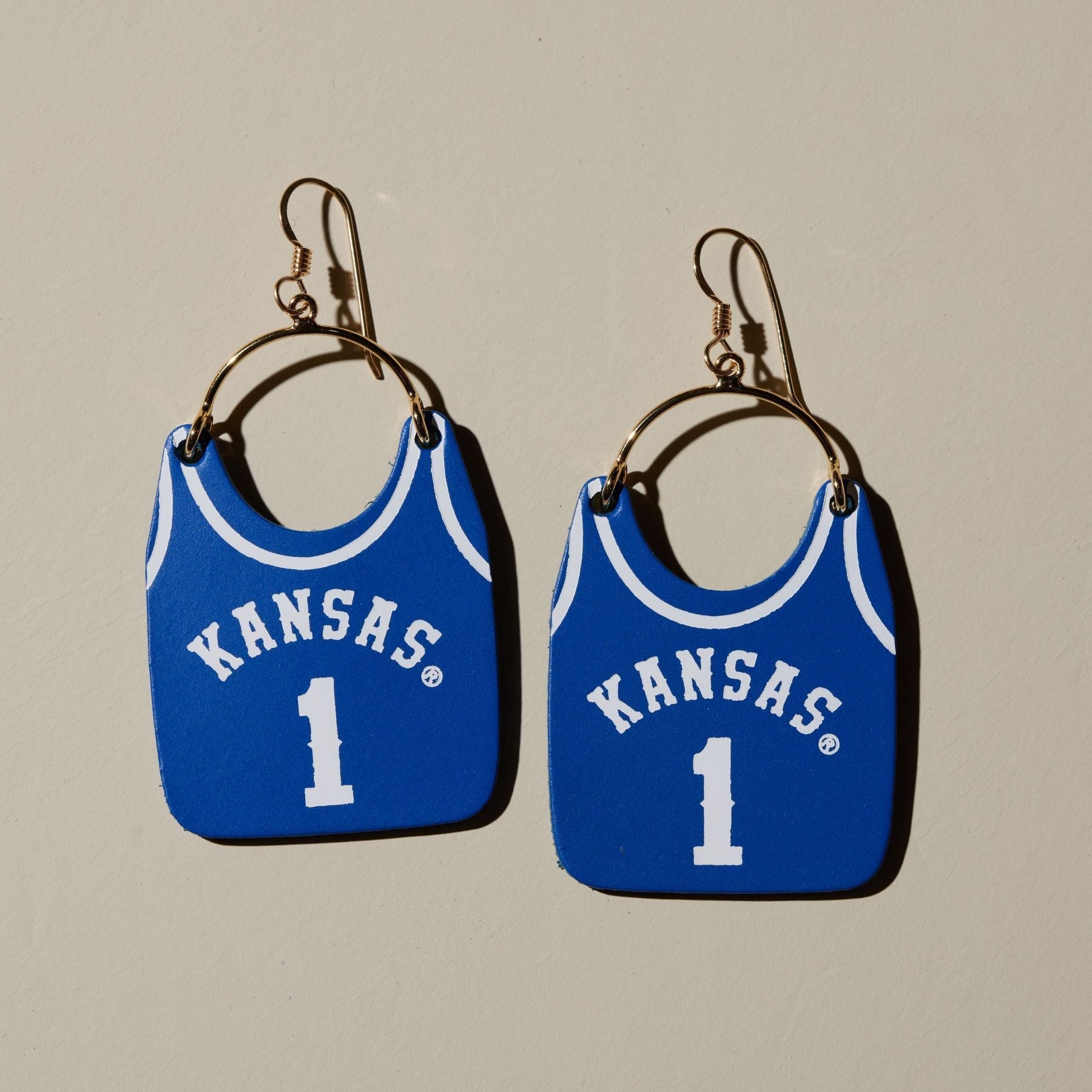 Elevate your game day look with our officially licensed Nickel & Suede x Cherry- KU #11 Jersey Charlie. These unique jersey-shaped earrings are designed to honor University of Kansas basketball player #1. Be the biggest fan, while looking cute and chic on KU game day. This earring is perfect for showing off your team spirit in style.