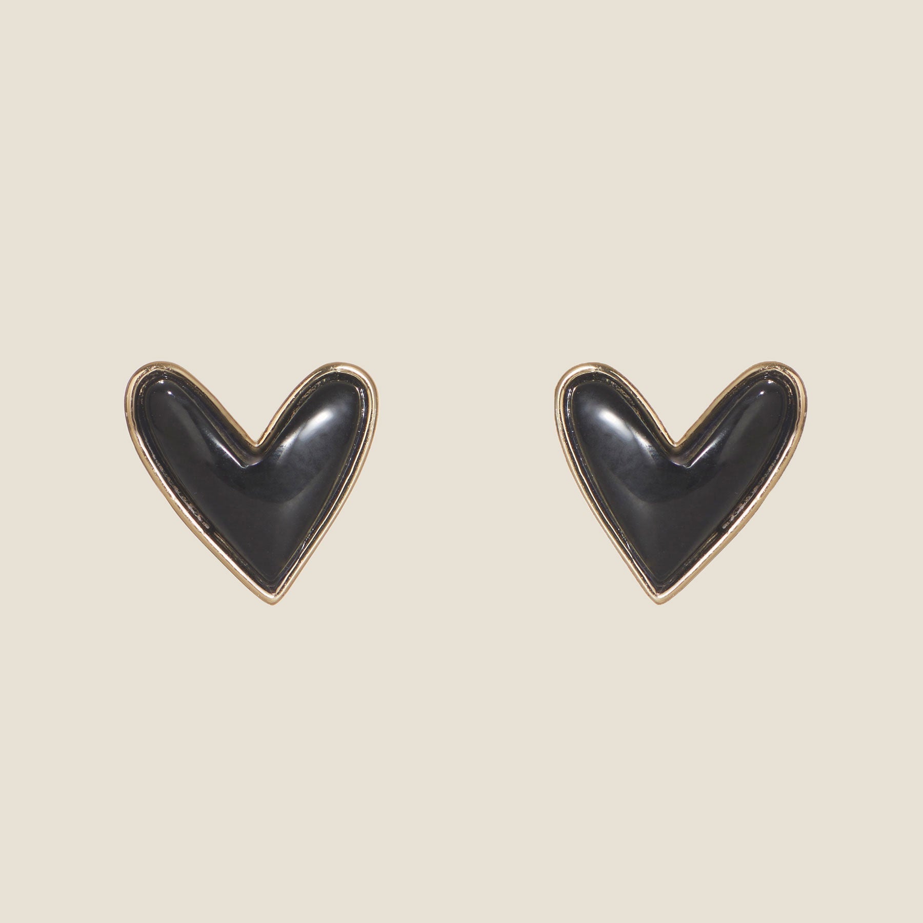 The Onyx Sweetheart Studs feature our signature heart shape, inspired by our patented Sweetheart statement earrings. These delicate stud earrings feature an Onyx stone with gold detailing.