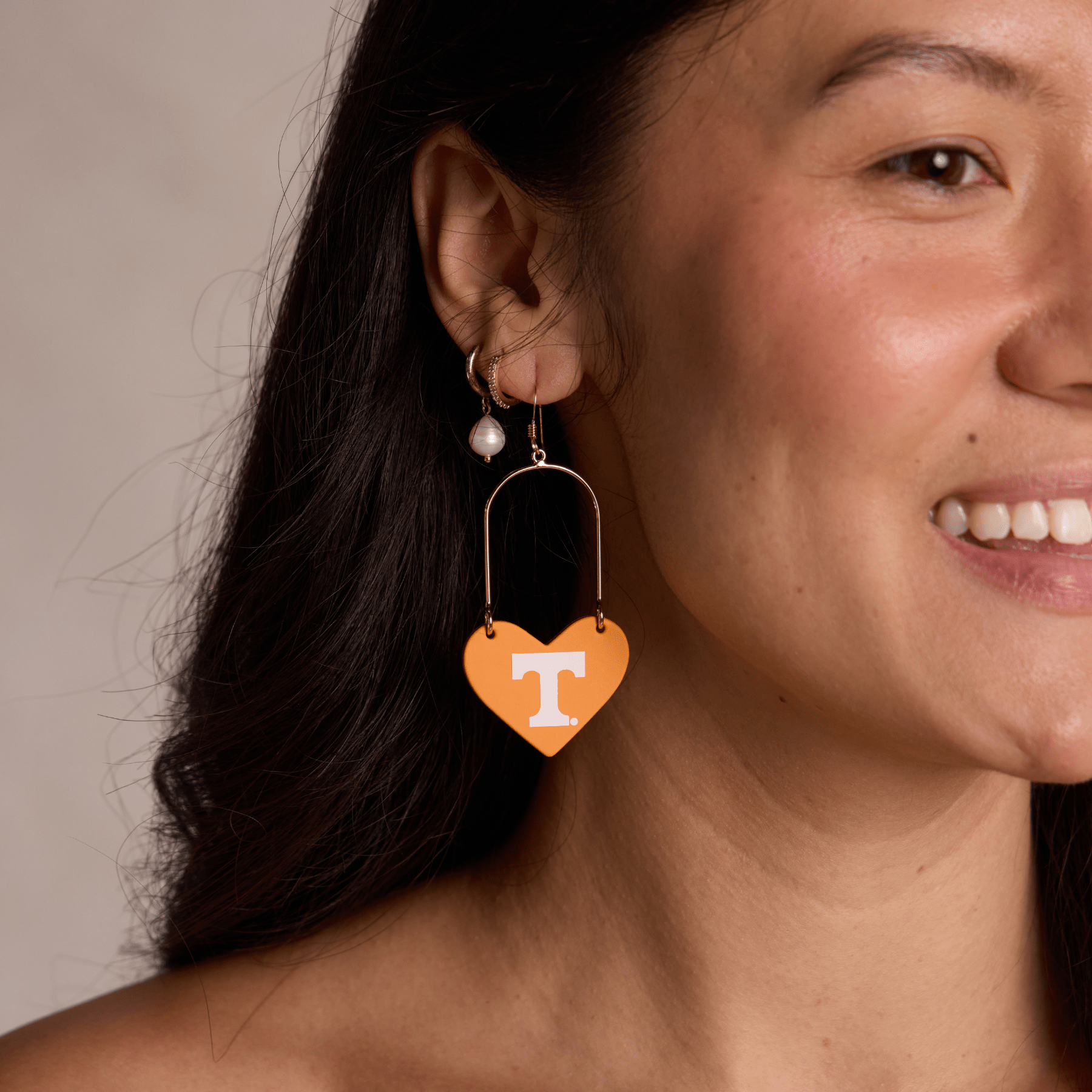 Upgrade your gameday style with our University of Tennessee Heartthrob leather earrings. These officially licensed earrings are crafted and hand-embossed in Kansas City from premium Italian leather for a standout look.
