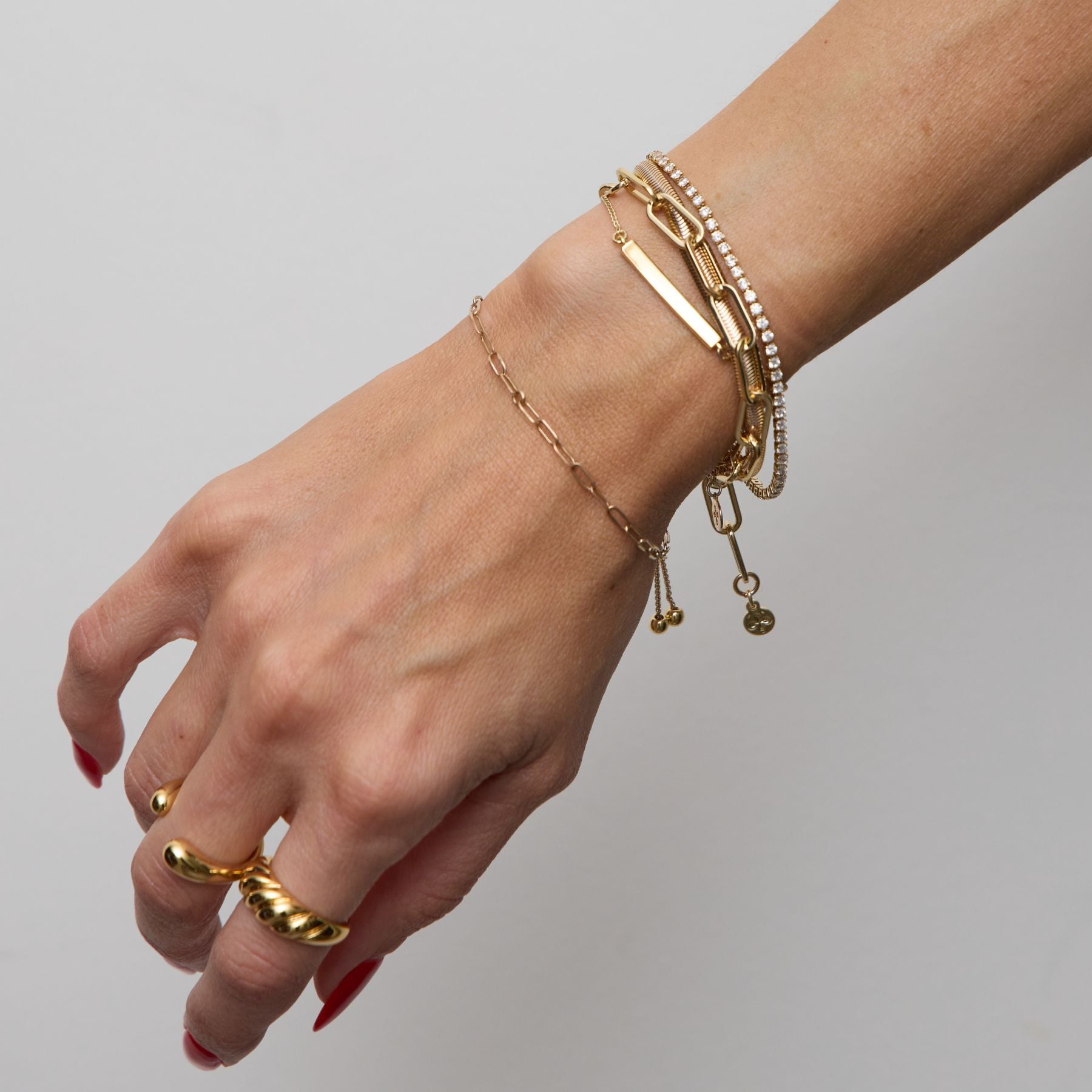 Our Paper Clip Chain Bracelet is the perfect dainty bracelet to customize. Wear alone for a minimal and elegant look or add a custom touch with our clippable 14k gold and rhodium charms.