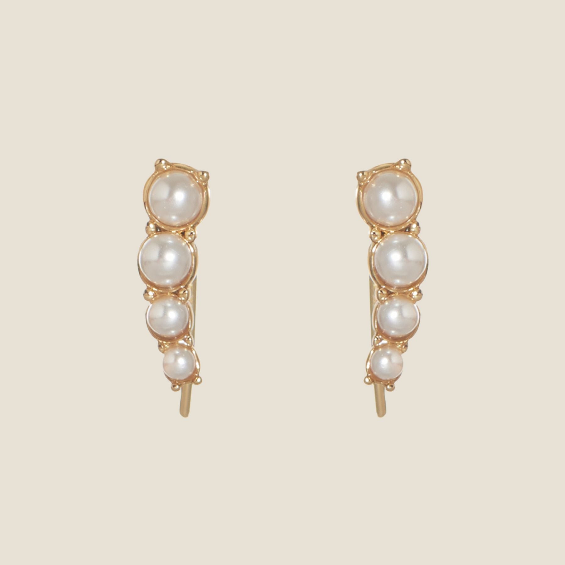 Made with glass pearls and 14k gold plating, these ear climbers are the perfect adornment for everyday elevated wear.