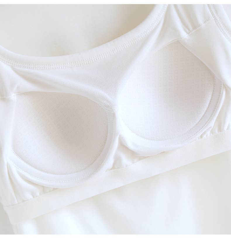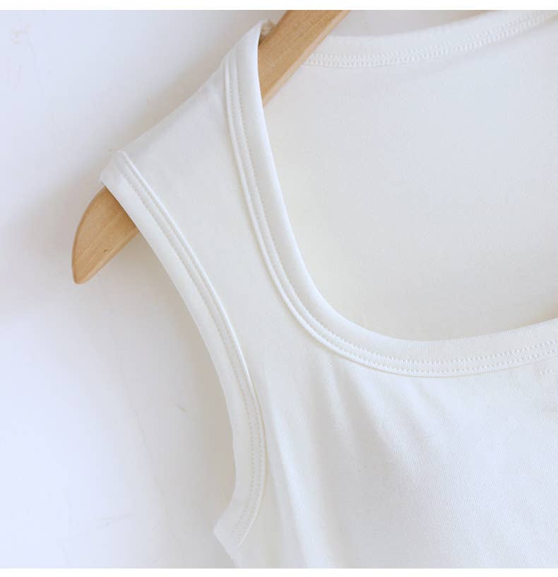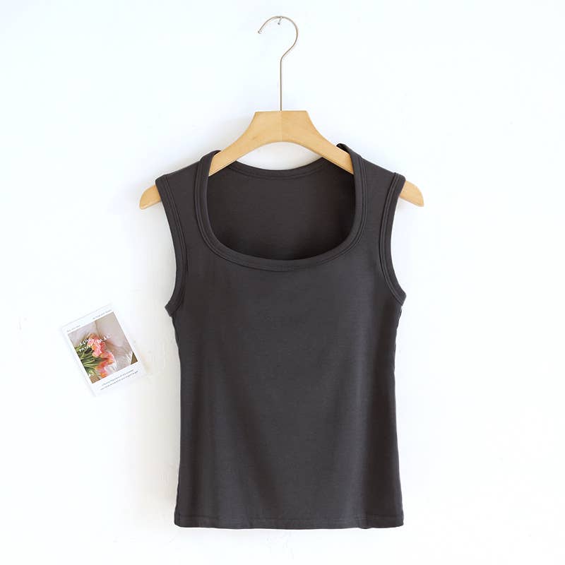 24% cotton blend built-in bra tank top ,queen anne neckline