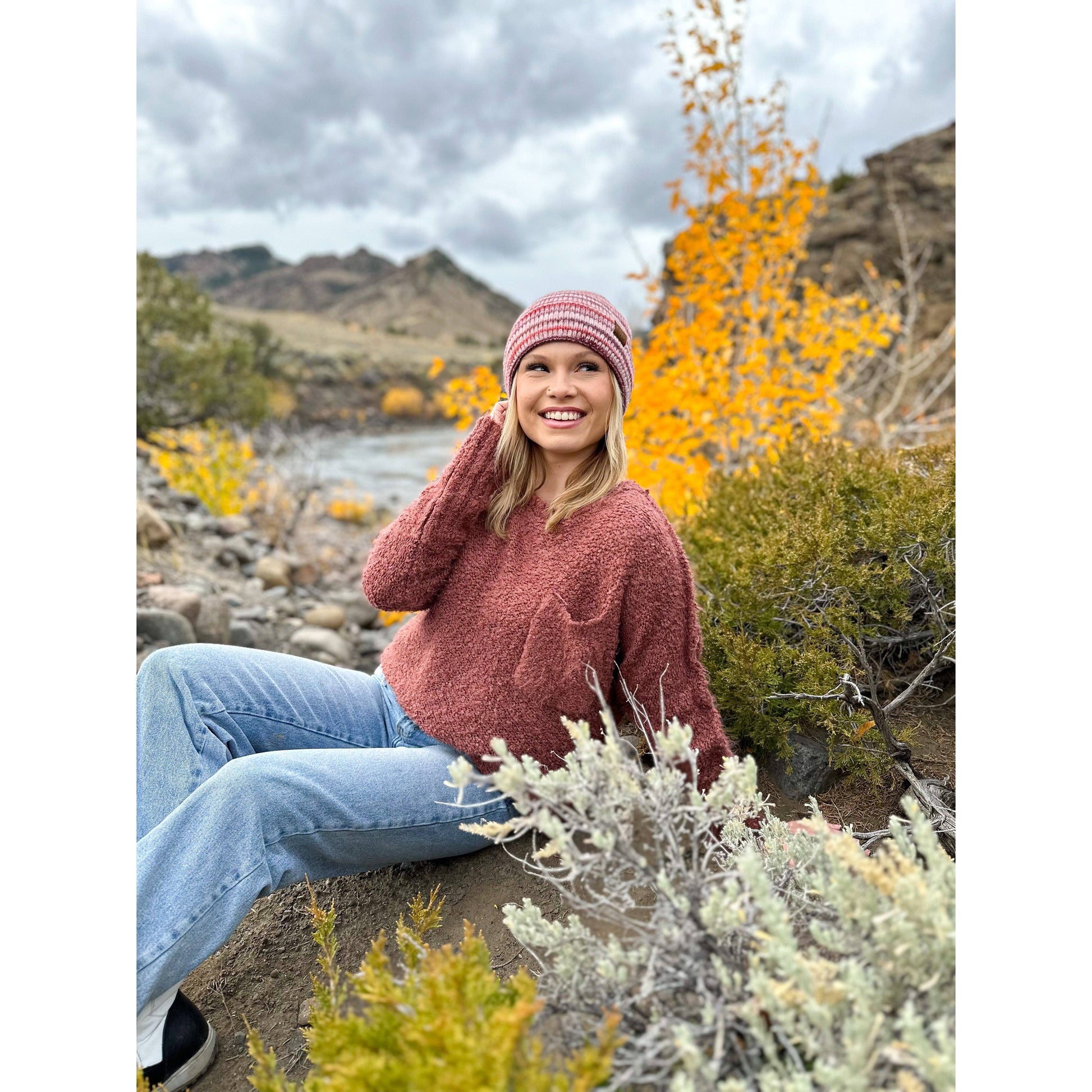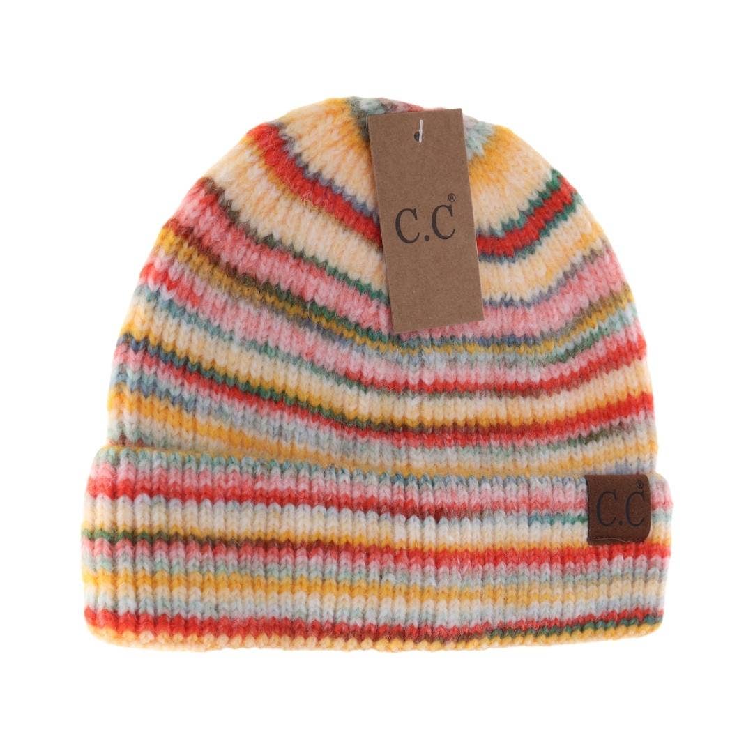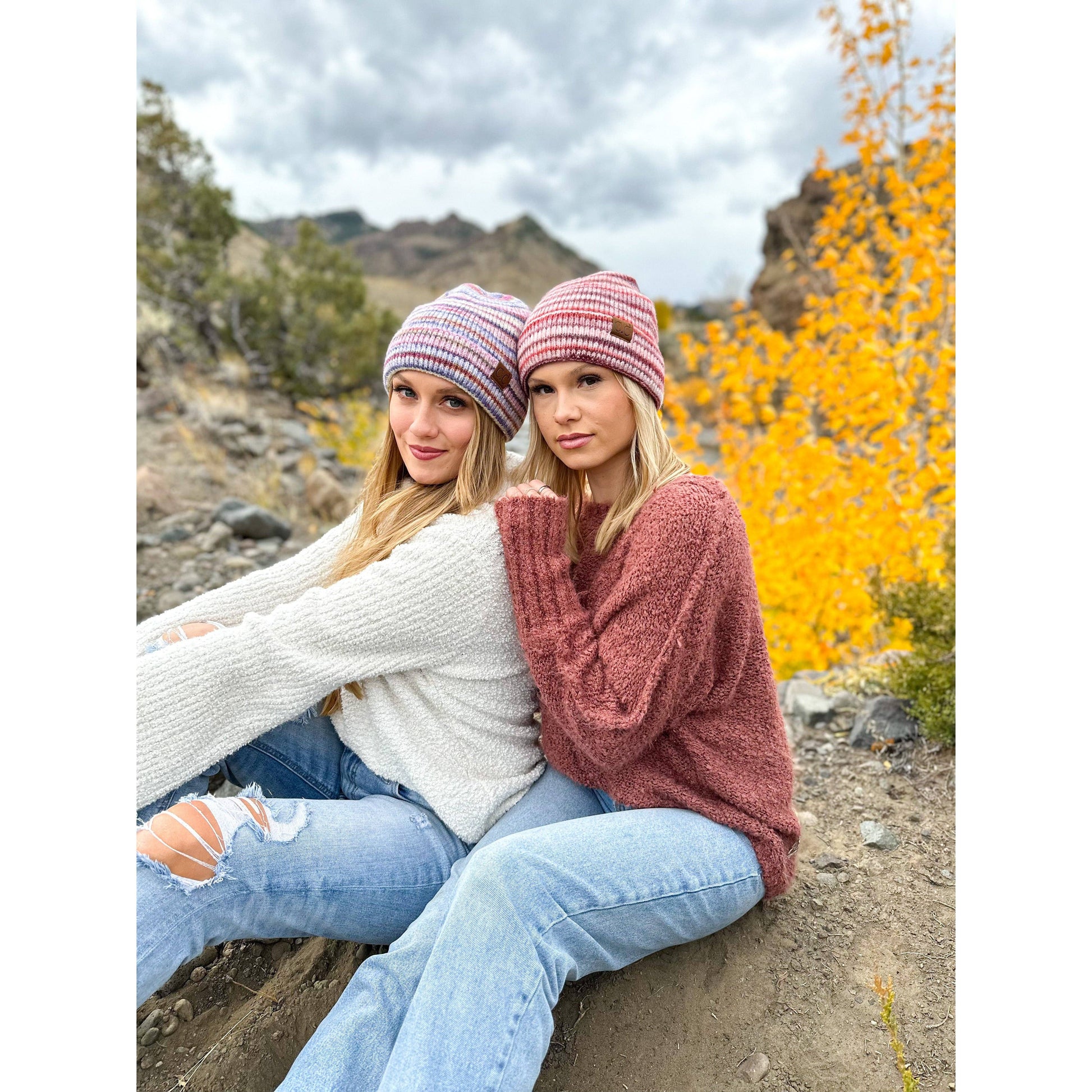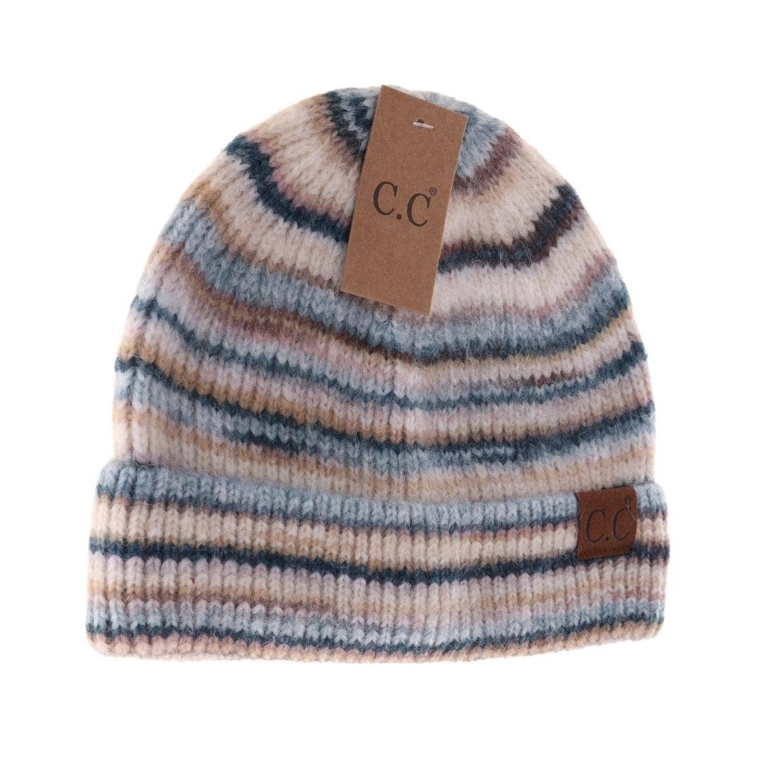 Beautiful Fall colors in a small and soft cuffed striped beanie!