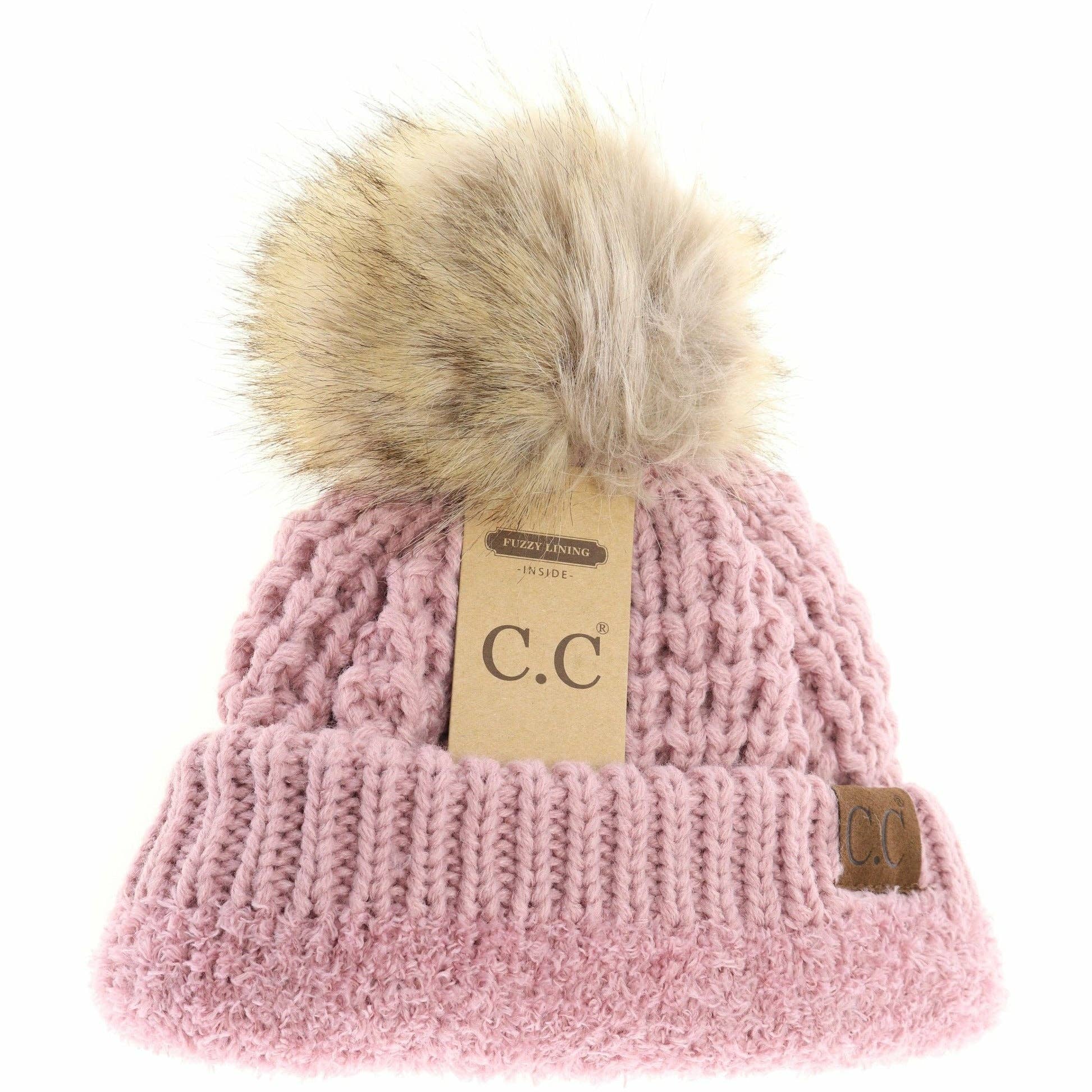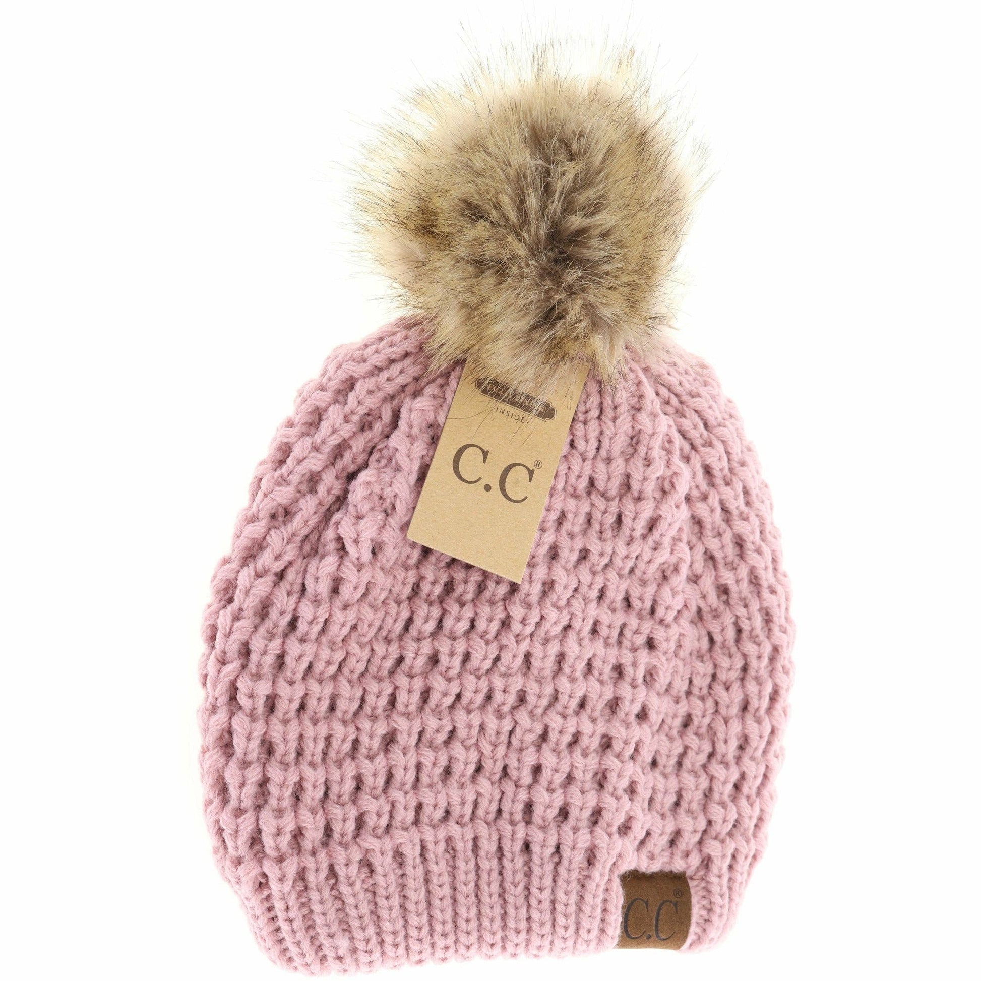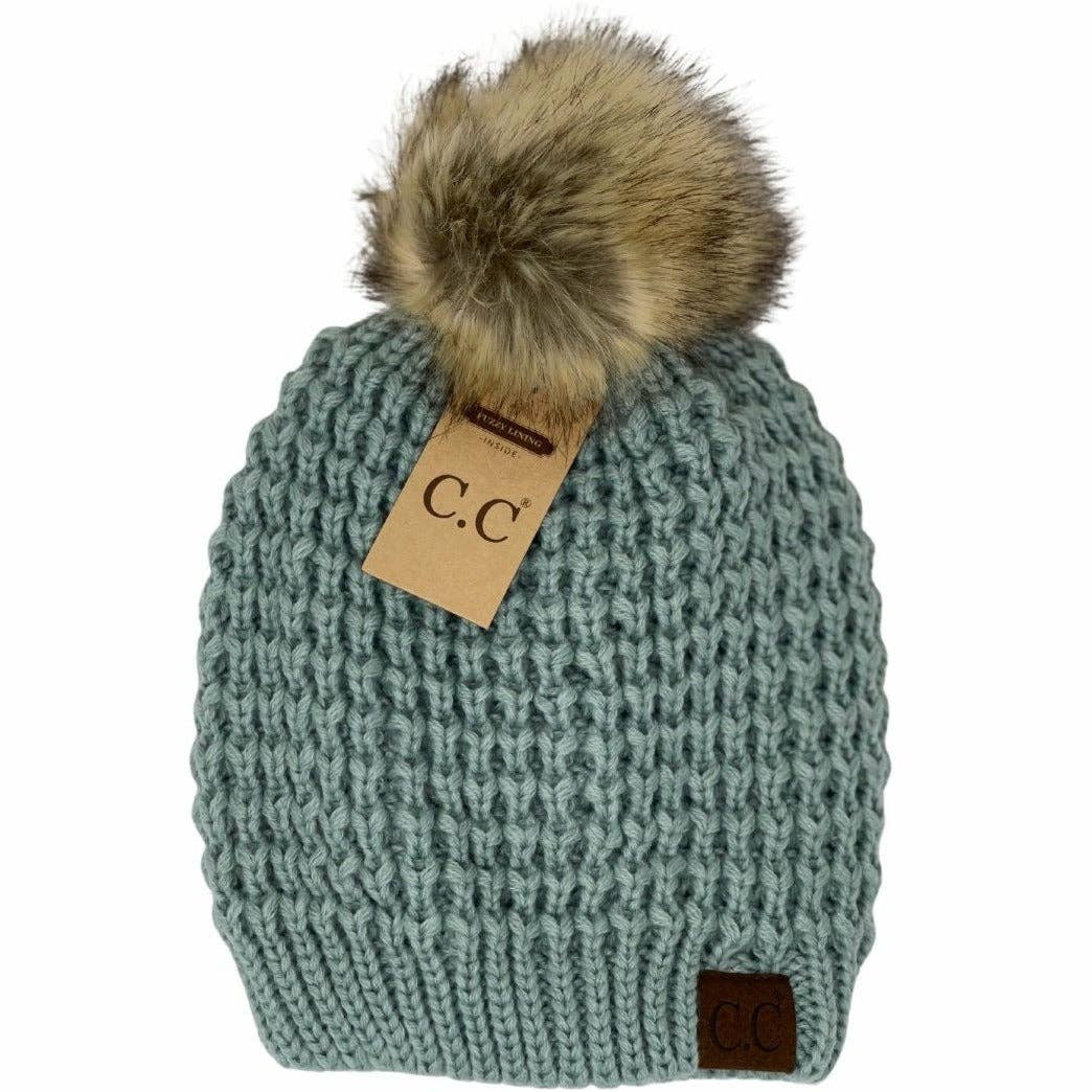 We are loving this elegant waffle stitched pattern on this solid beanie. We added the best-selling natural faux fur pom to top it off. It is available in a variety of classic and earth tone colors to fit every person's fancy!