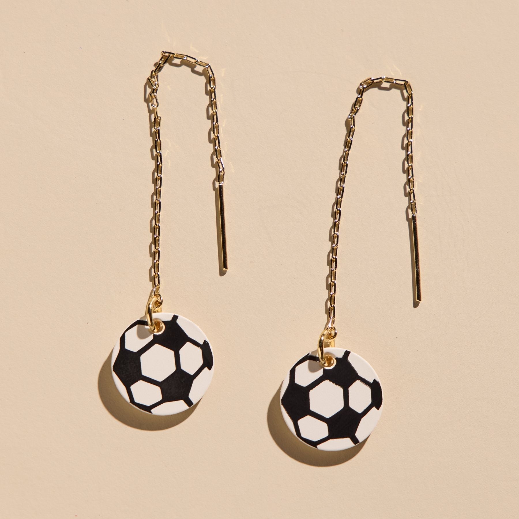 Elevate your game day look with our Striker Soccer Threader Earrings, celebrating our Kansas City women's soccer team. This earring is perfect for showing off your KC team spirit in style.