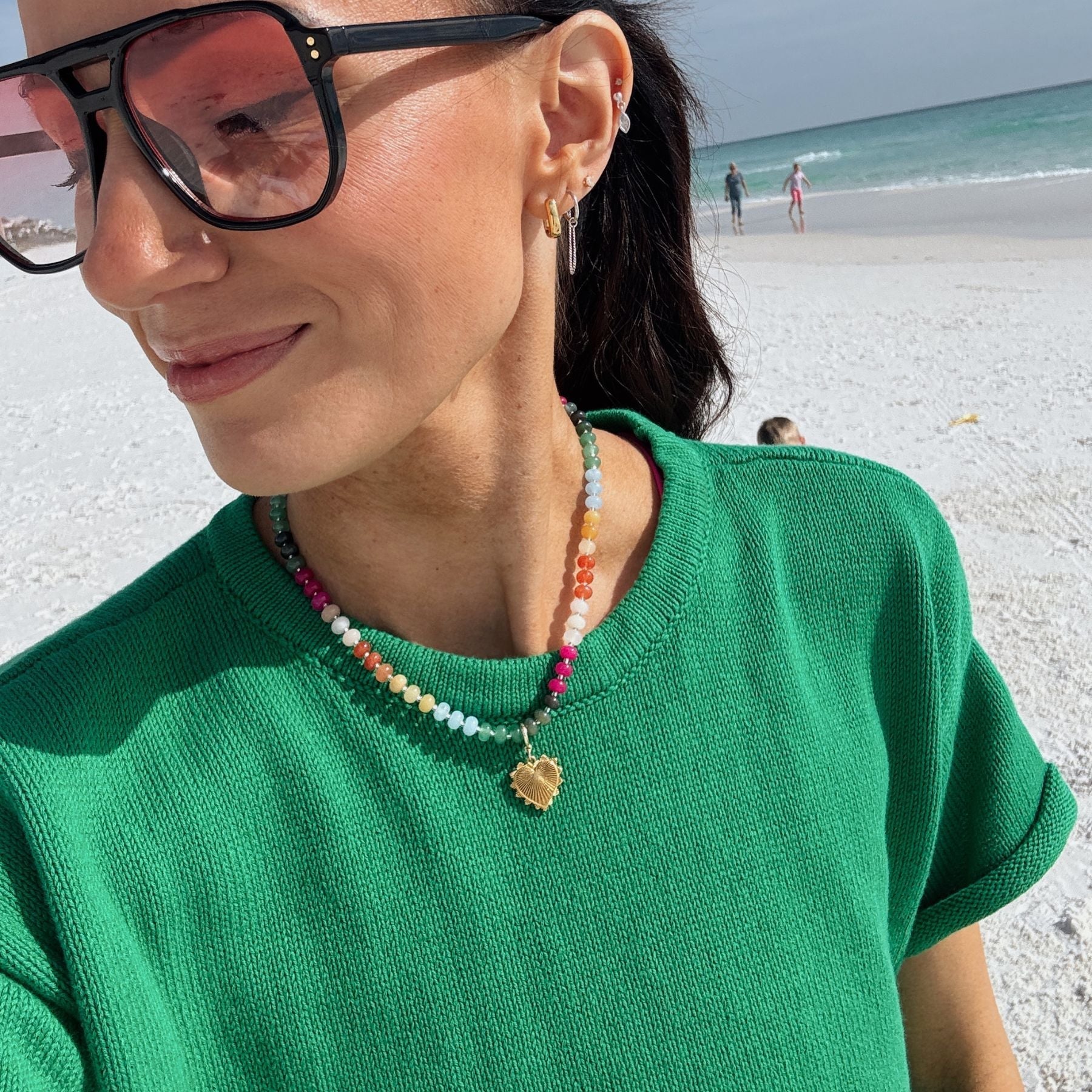 Add a unique touch to any bracelet, necklace or earring with the Sunburst Heart Charm. Customize with with your favorite piece of jewelry, like a huggie hoop or bracelet, with a simple clasp that opens and closes with ease.