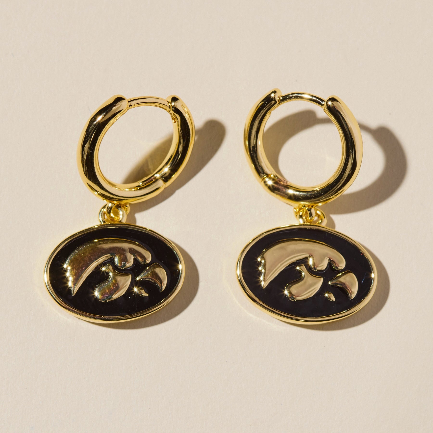 Elevate your game day look with our University of Iowa Tigerhawk Huggies. These enamel huggie hoop earrings give a subtle nod to your team spirit.