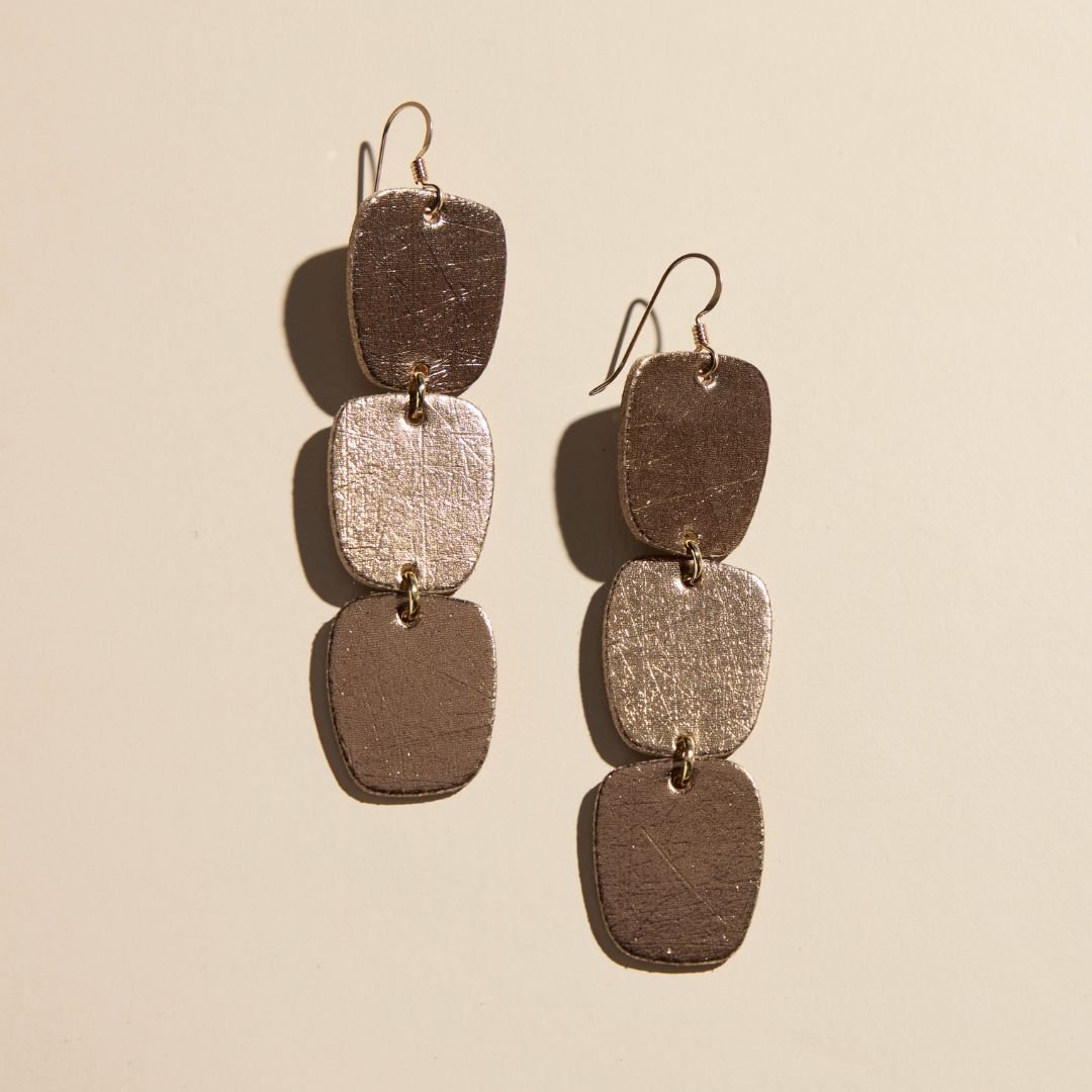 Meet your new golden hour go-to. The Cali earrings are crafted from Vintage Bronze, lightweight leather with a textured finish that brings all the shimmer without the weight.