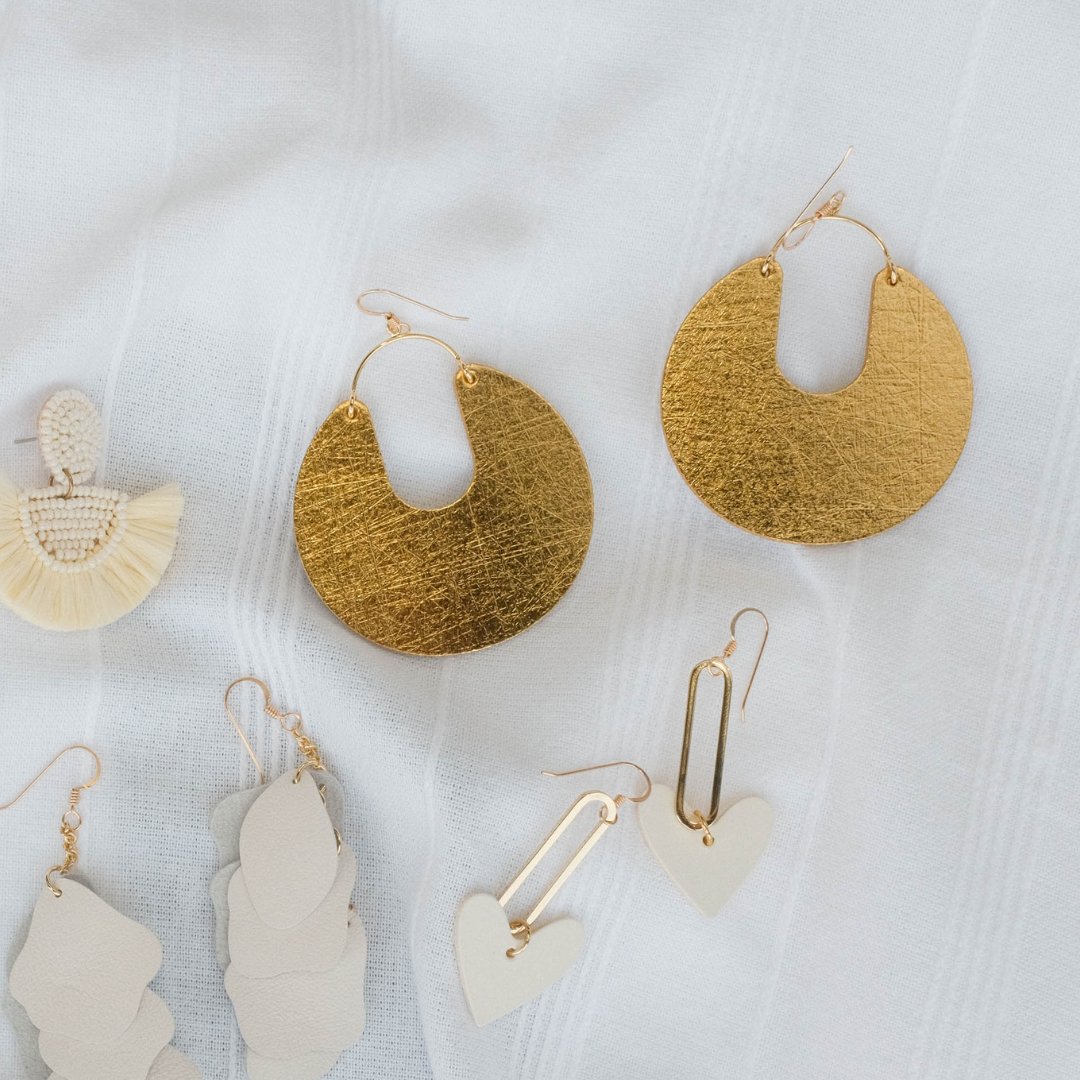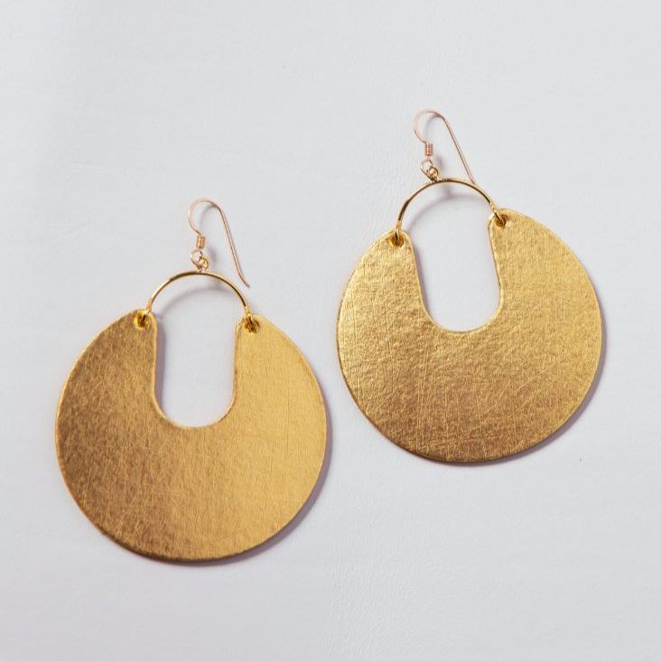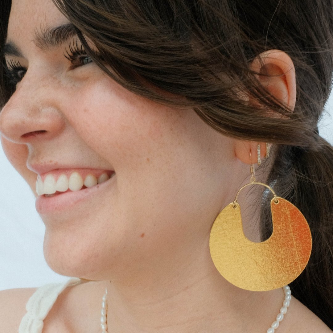 The Leo is a wide, round statement piece with a semi-hollow center. We've supersized our popular Nina shape for a statement style. This style is made of our smooth vintage gold leather.