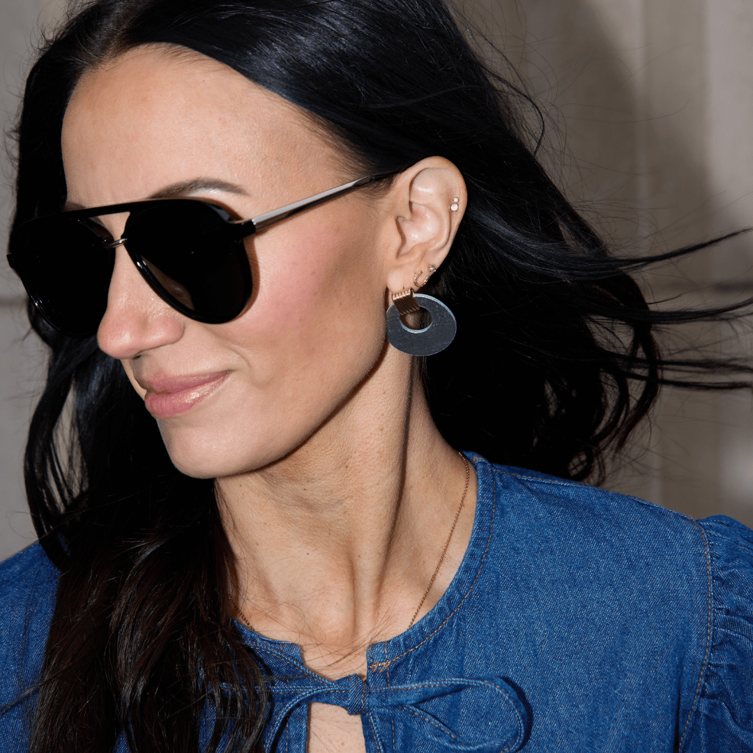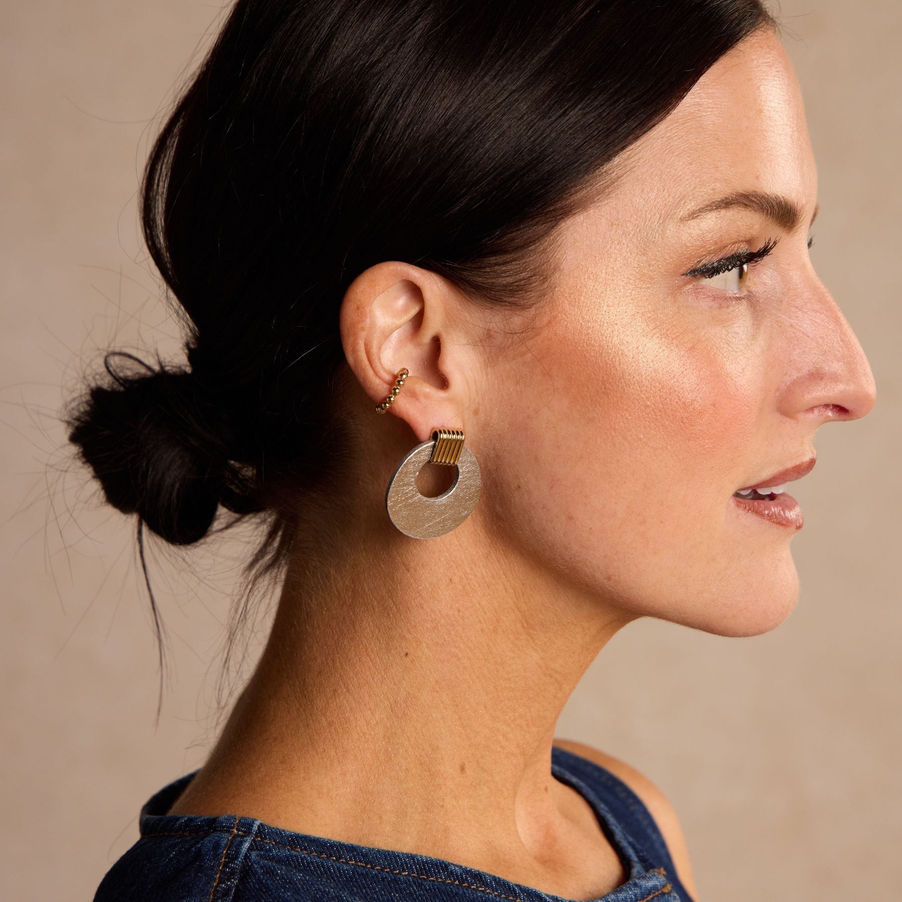 Timeless style meets a modern round silhouette with the Mixed Metal Vintage Silver Evan. This lightweight statement earring is created with our Vintage Silver leather and a gold stud component.