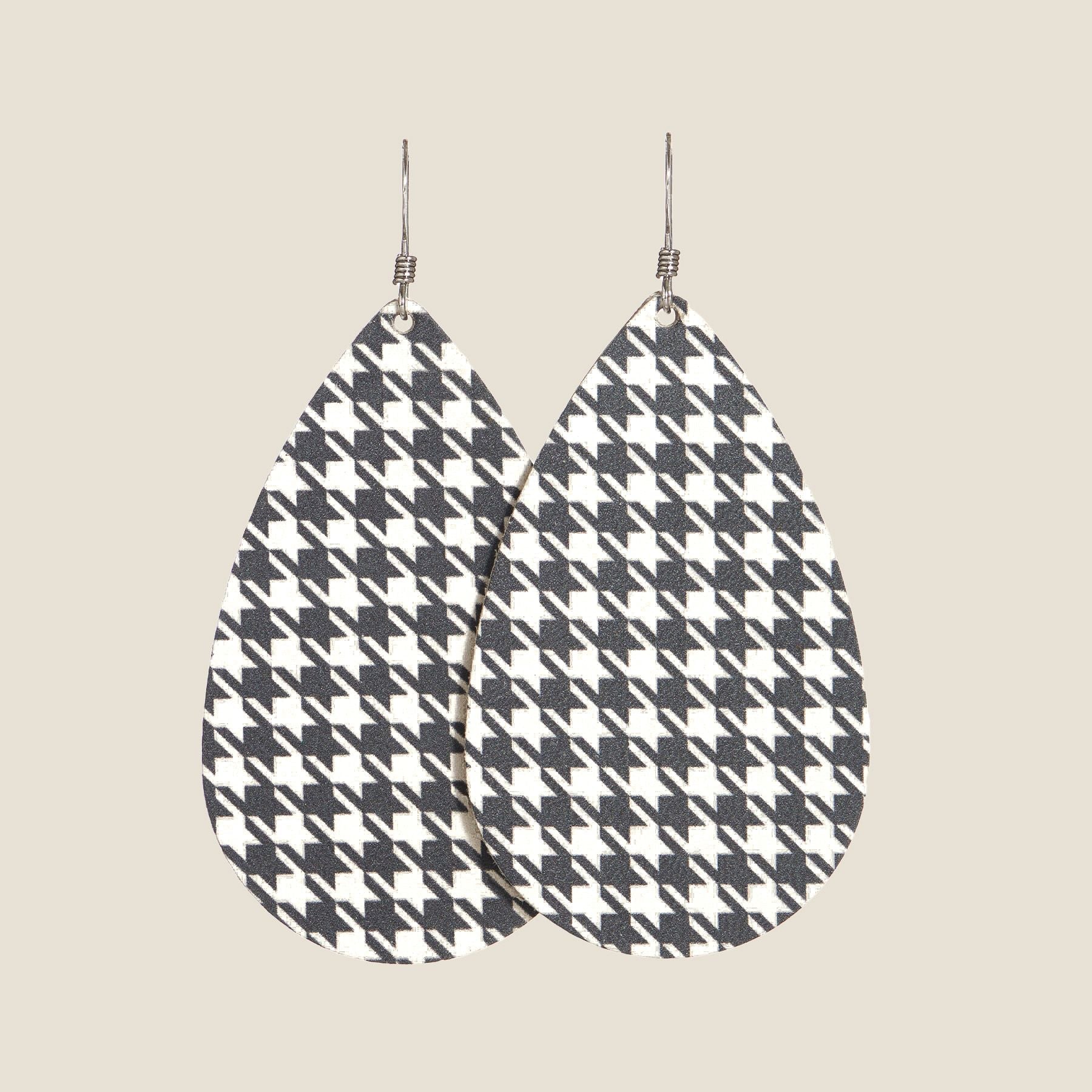 The classic Teardrop style is now available in our Houndstooth leather! This style features black houndstooth print over our signature white leather, making this classic combo a staple for any occasion.