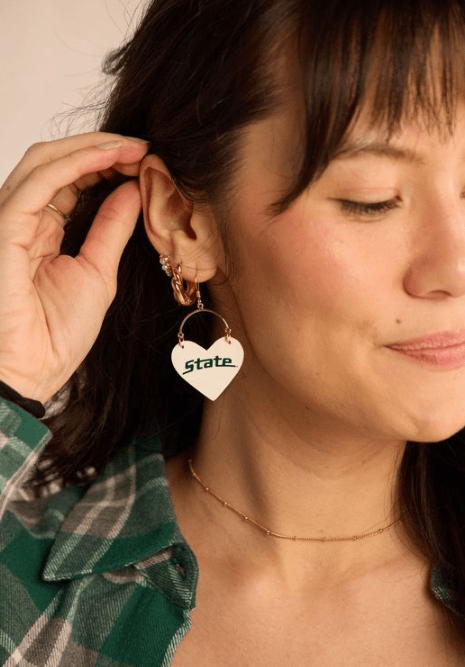 Elevate your gameday look with our Michigan State University Lover leather earrings - the perfect accessory for passionate fans, proud alumni, and stylish students. These officially licensed earrings are crafted and hand-embossed in Kansas City from premium Italian leather for a standout look.