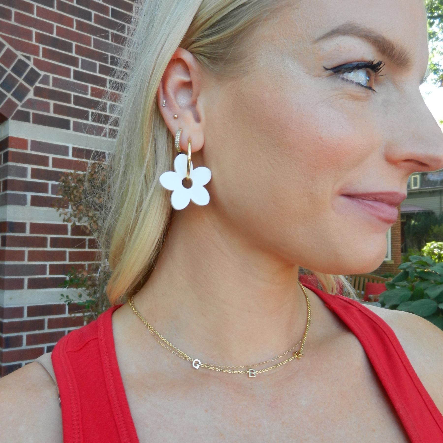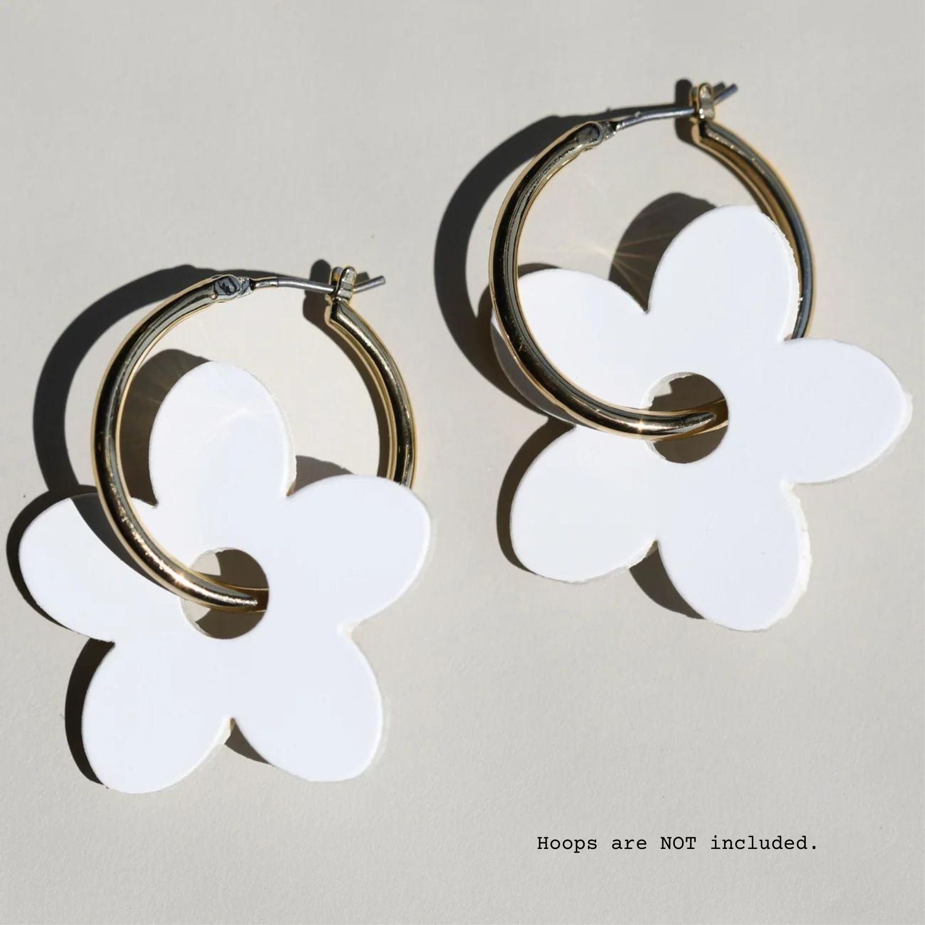 Introducing our White Petal Charms! These leather pairs do not include earring hooks or Halo Hoops, hoops can be purchased separately. These Petals are ideally worn threaded onto size Medium Halo Hoops.