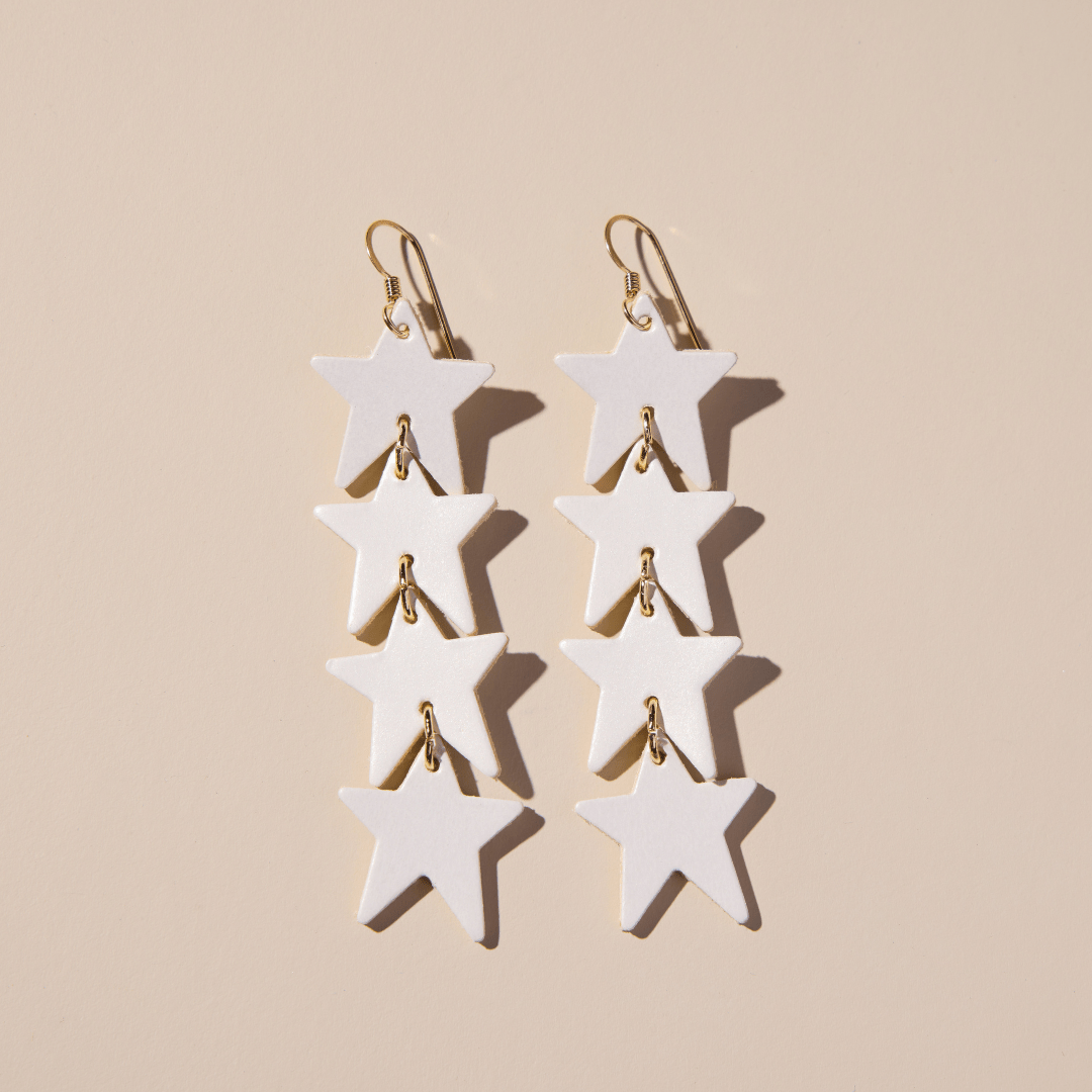 You're guaranteed to be the star of the party with our new White Shimmer Izzy. Made from White shimmery leather, this star-shaped drop earring is the perfect dazzling compliment to any outfit.