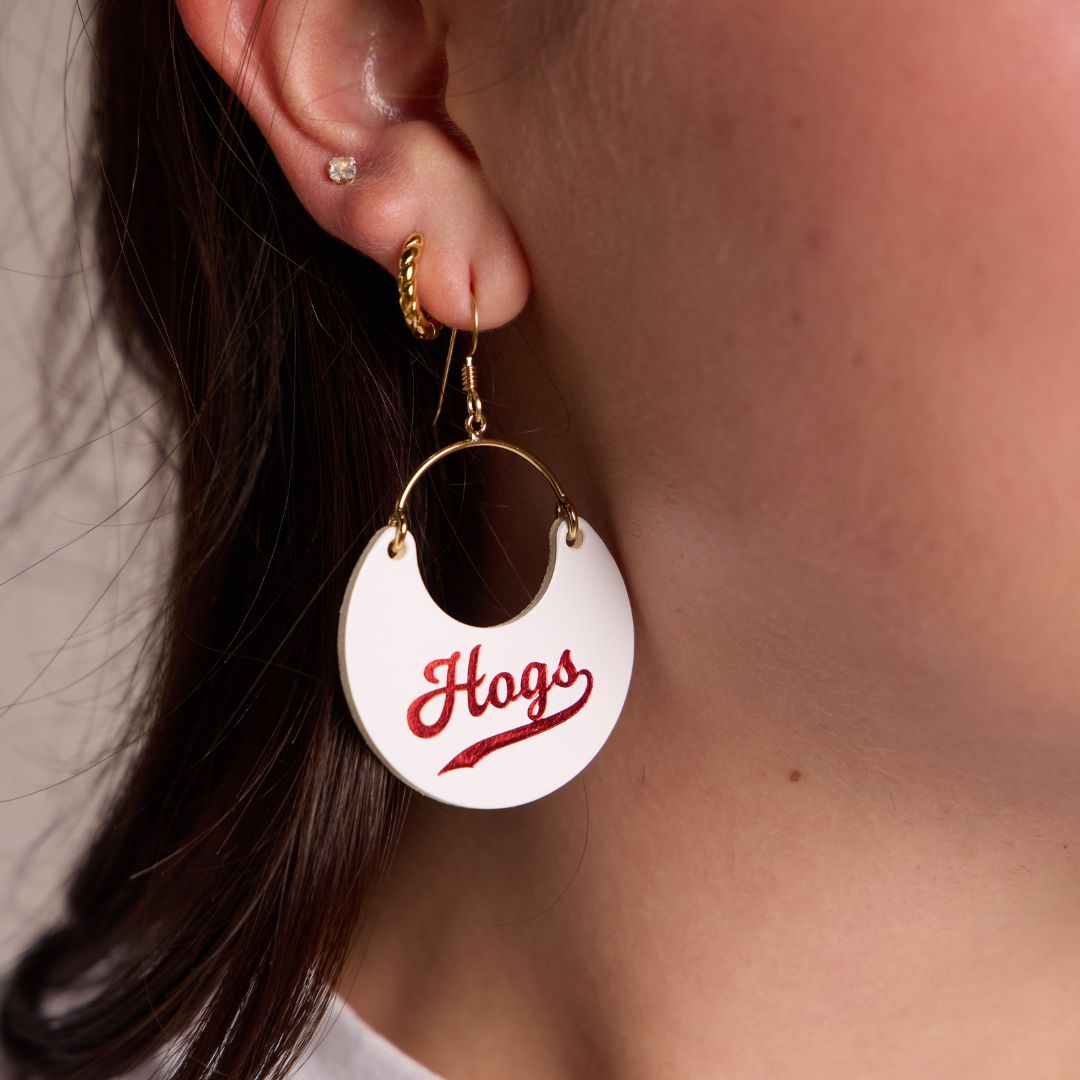 Get ready for gameday with our University of Arkansas Nina leather earrings. This spirited earring is officially licensed and perfect for showing off your team pride. Our earrings are crafted and hand-embossed in Kansas City from premium Italian leather for a standout look.