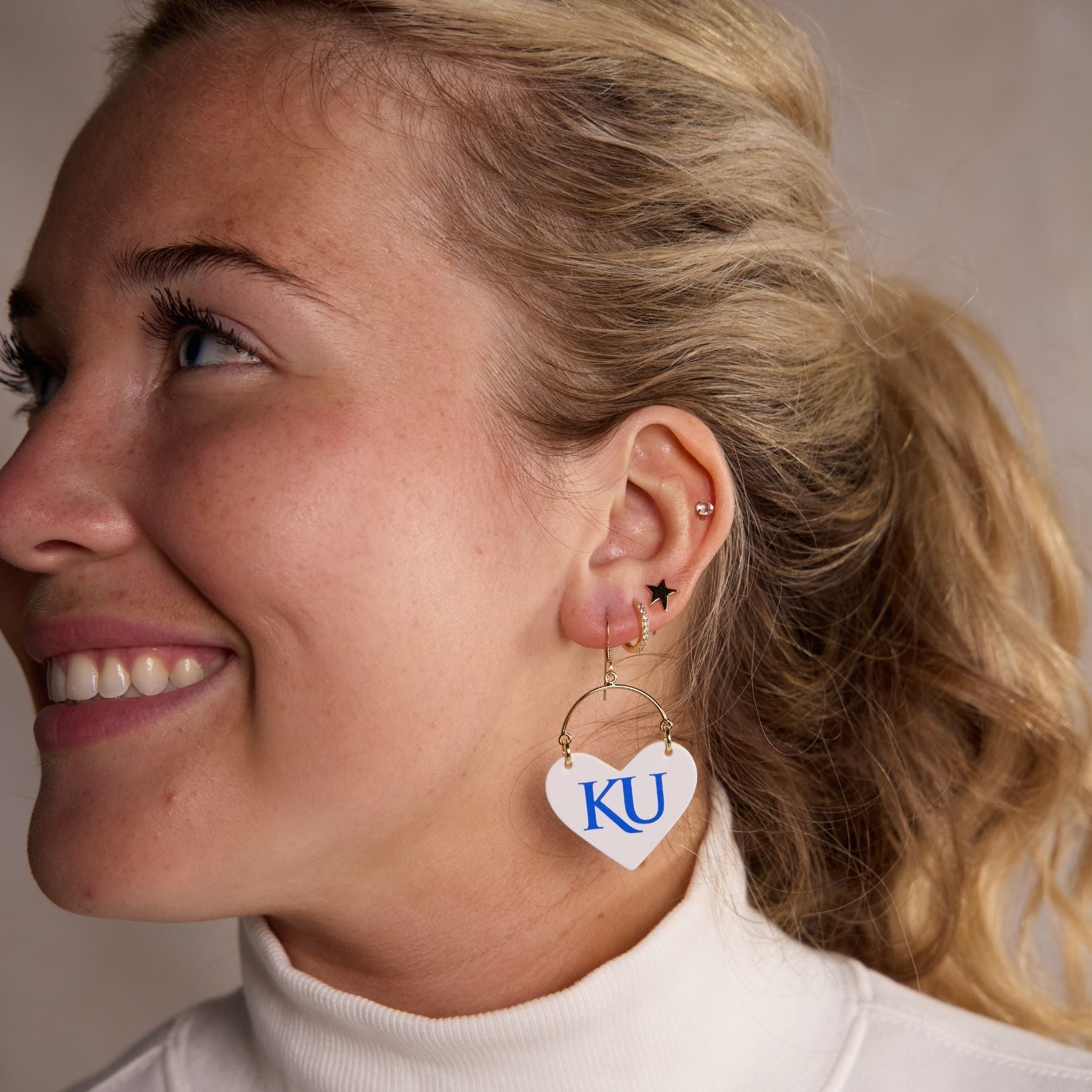 Elevate your gameday look with our University of Kansas Lover leather earrings - the perfect accessory for passionate fans, proud alumni, and stylish students. These officially licensed earrings are crafted and hand-embossed in Kansas City from premium Italian leather for a standout look.