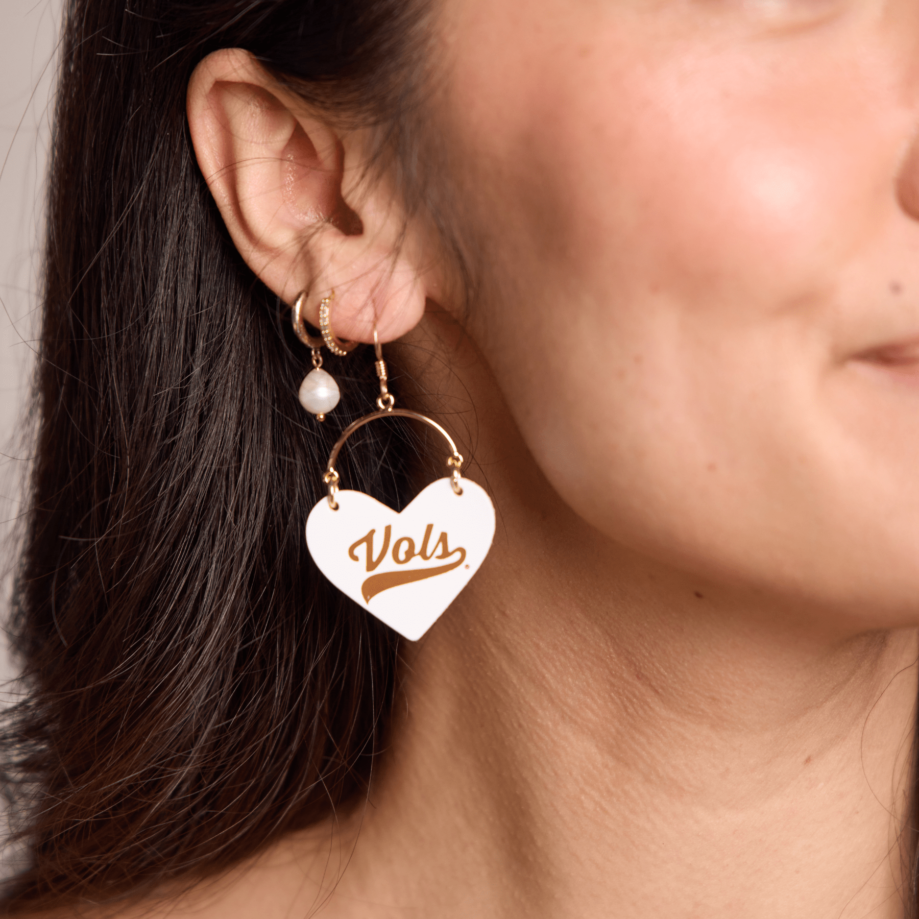 Elevate your gameday look with our University of Tennessee Vols Lover leather earrings - the perfect accessory for passionate fans, proud alumni, and stylish students. These officially licensed earrings are crafted and hand-embossed in Kansas City from premium Italian leather for a standout look.