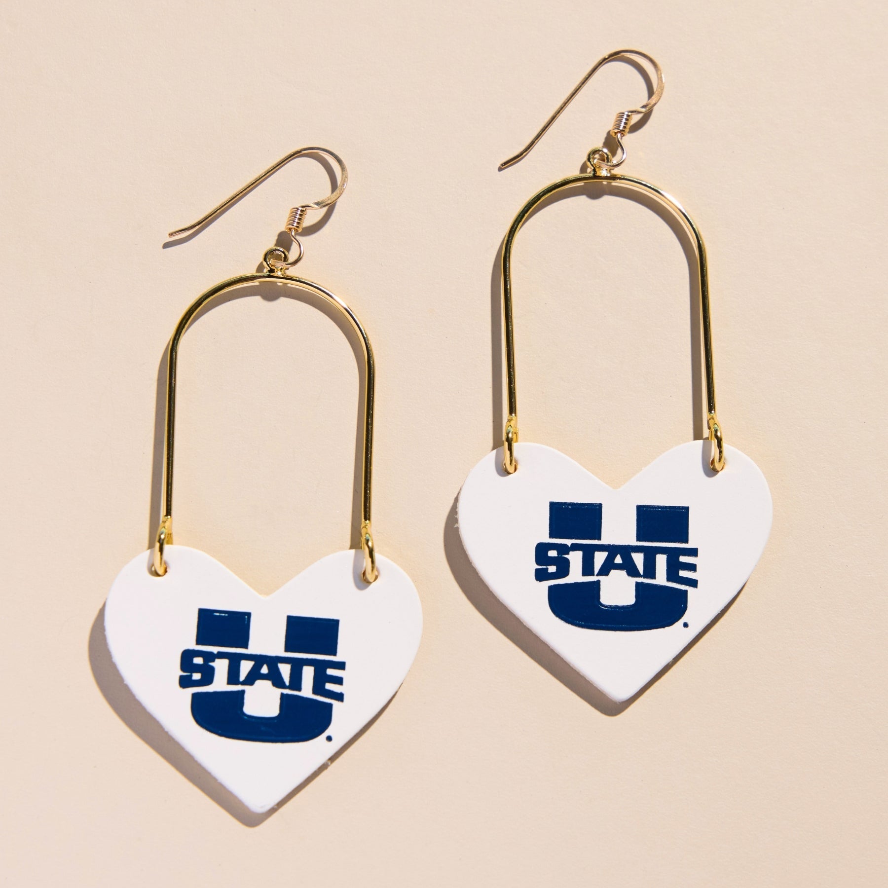Elevate your game day look with our White Utah State University Heartthrob earrings. A cute and chic game day earring that's perfect for showing off your team spirit in style.