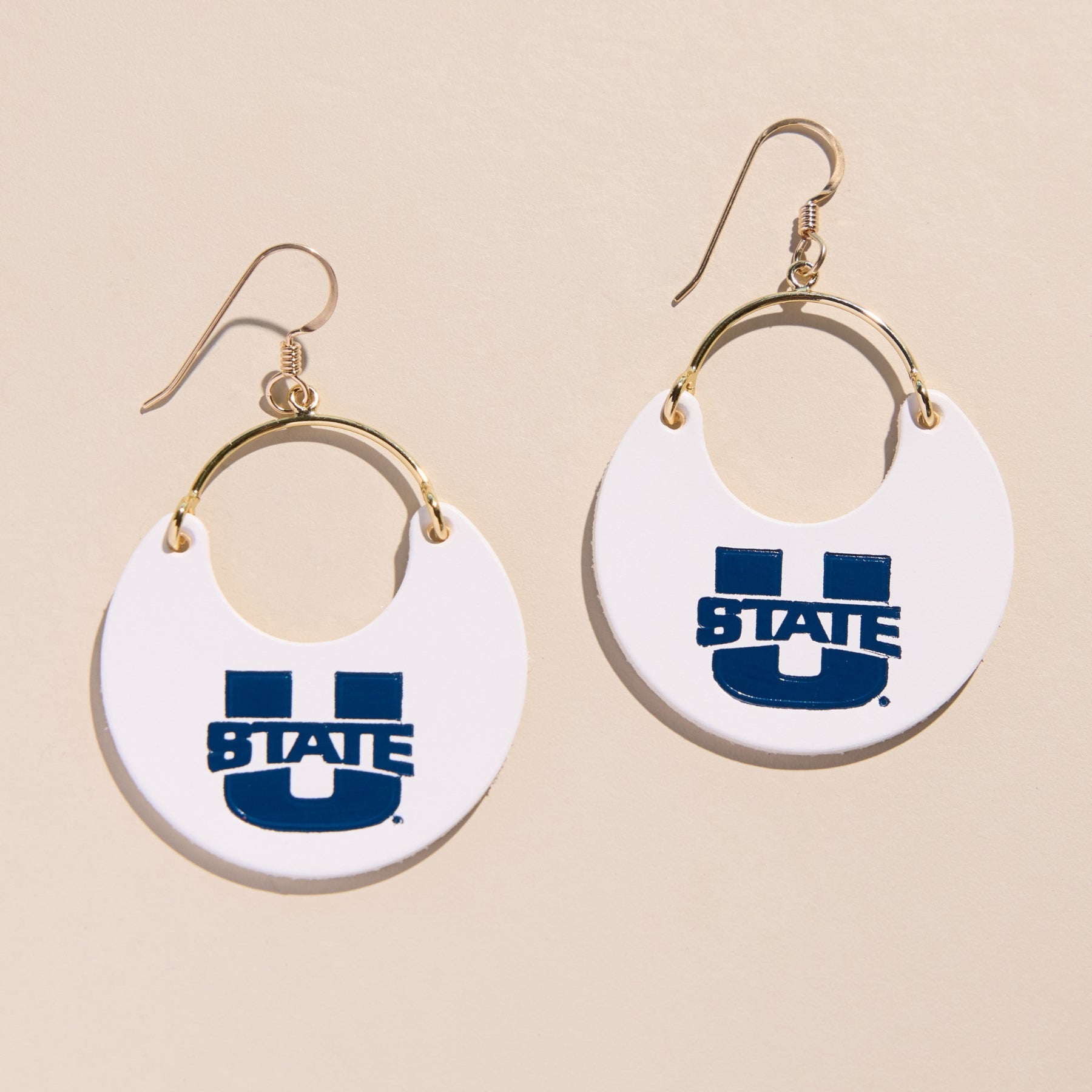 Elevate your gameday look with our Utah State University Nina leather earrings - the perfect accessory for passionate fans, proud alumni, and stylish students. These officially licensed earrings are crafted and hand-embossed in Kansas City from premium Italian leather for a standout look.